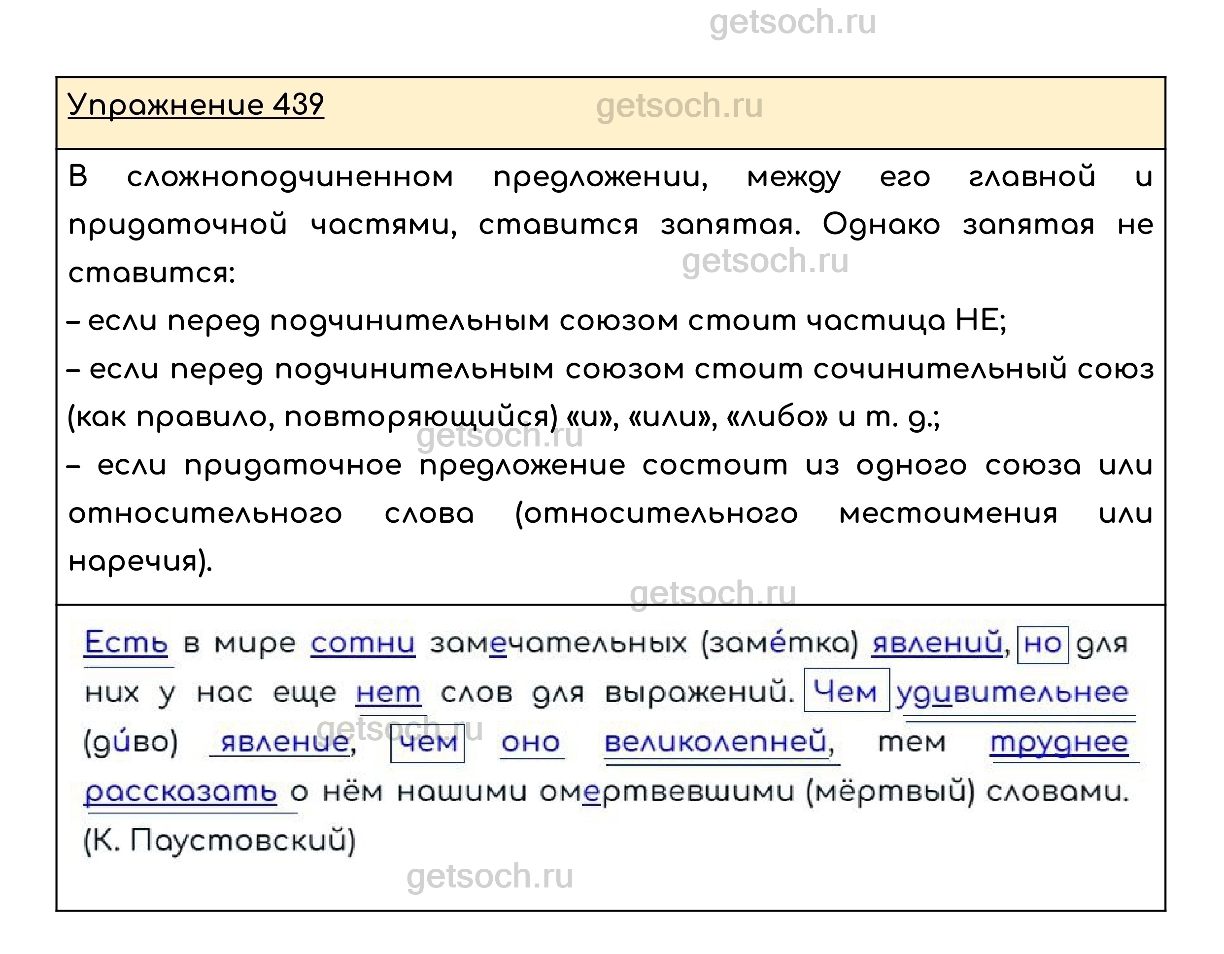 Рассмотрим ответы на Упражнение 439 из учебника по русскому языку для 8 класса Ладыженской