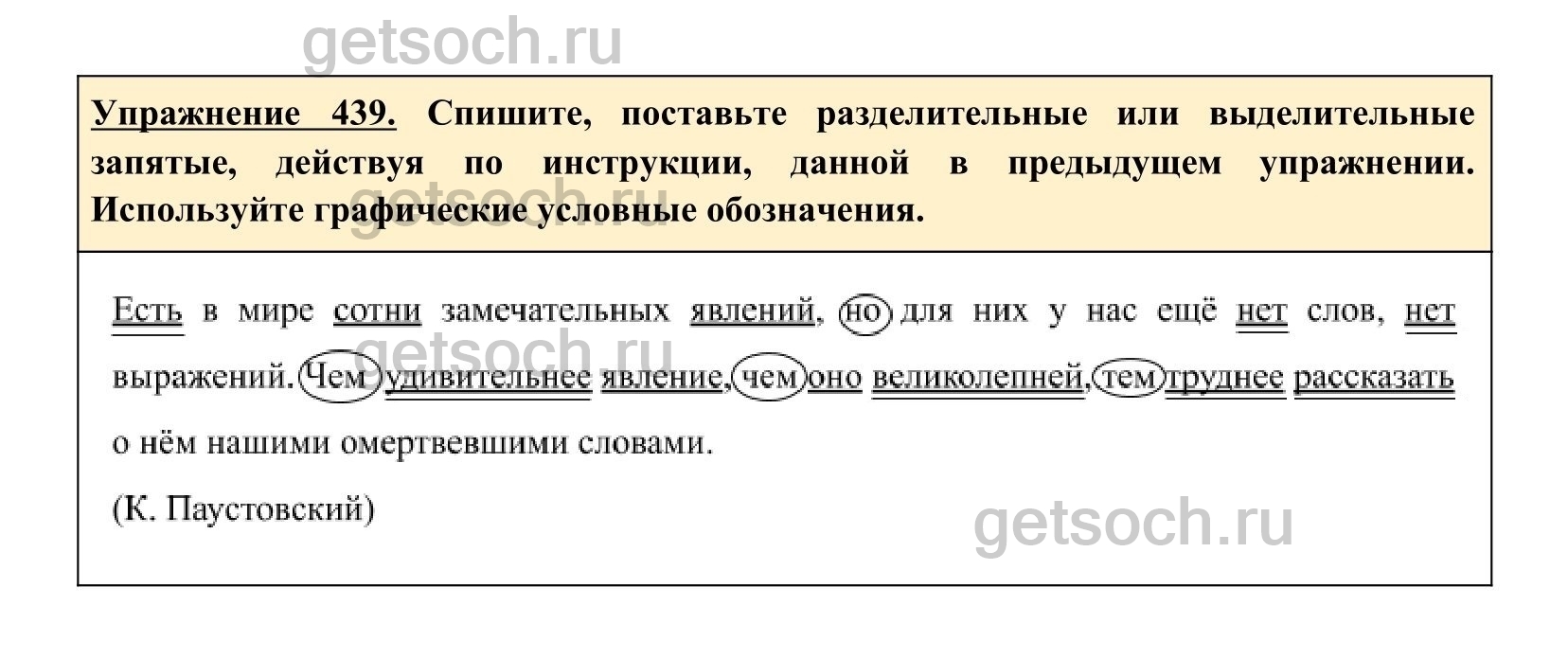 Упражнение 439. Спишите, поставьте разделительные или выделительные запятые, действуя по инструкции, данной в предыдущем упражнении. Используйте графические условные обозначения.