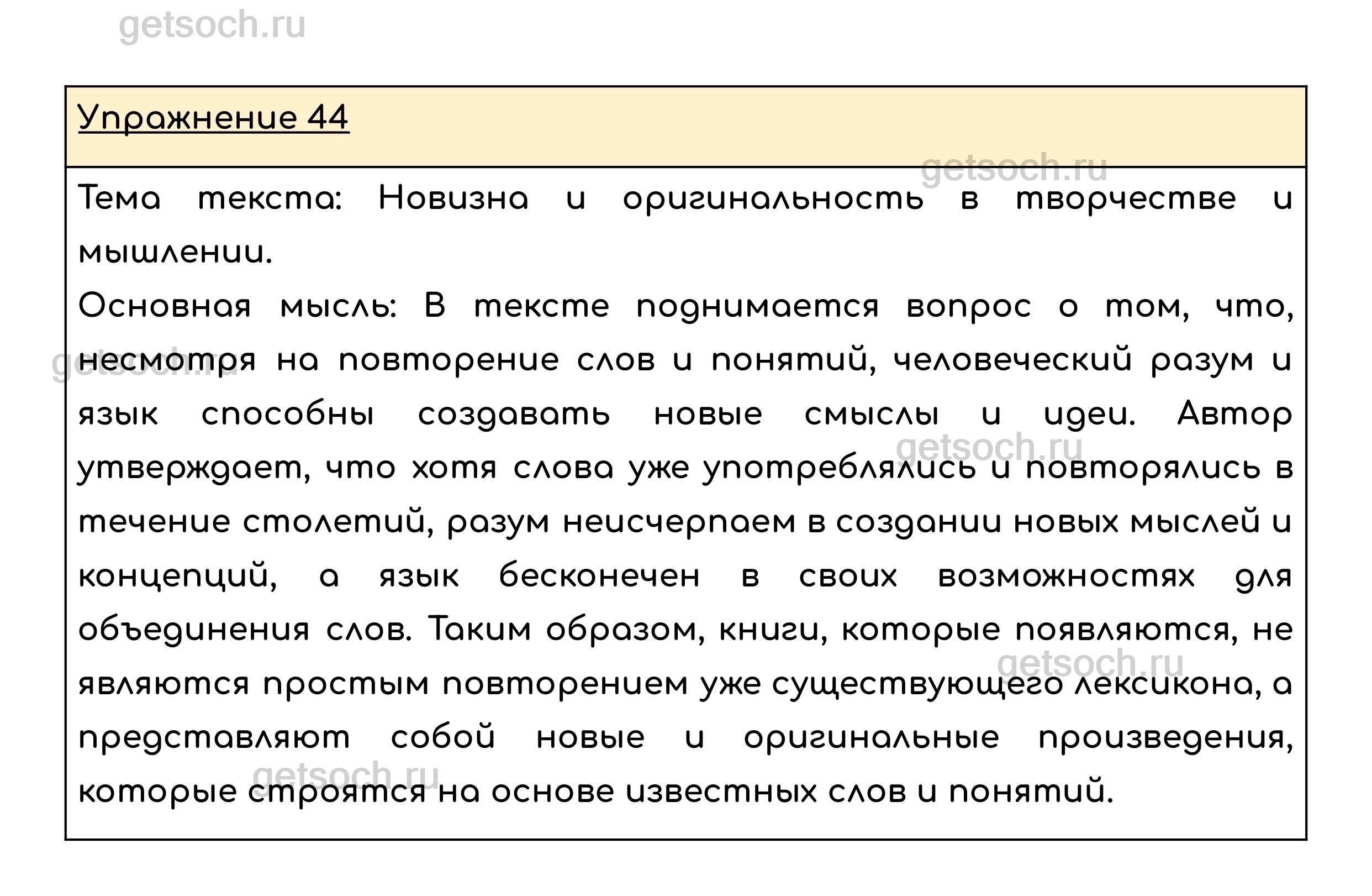 Рассмотрим ответы на Упражнение 44 из учебника по русскому языку для 8 класса Ладыженской
