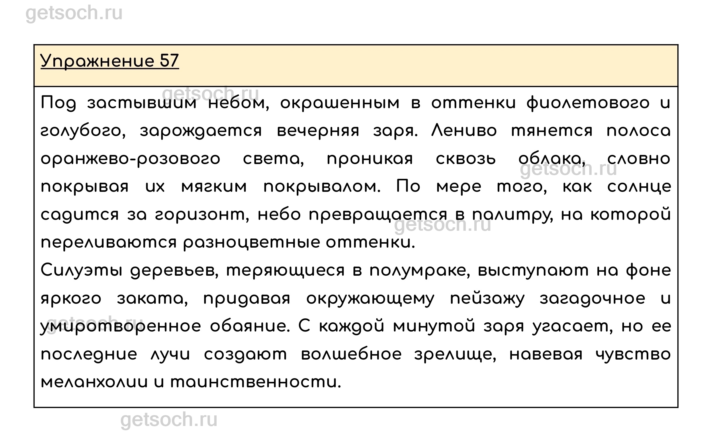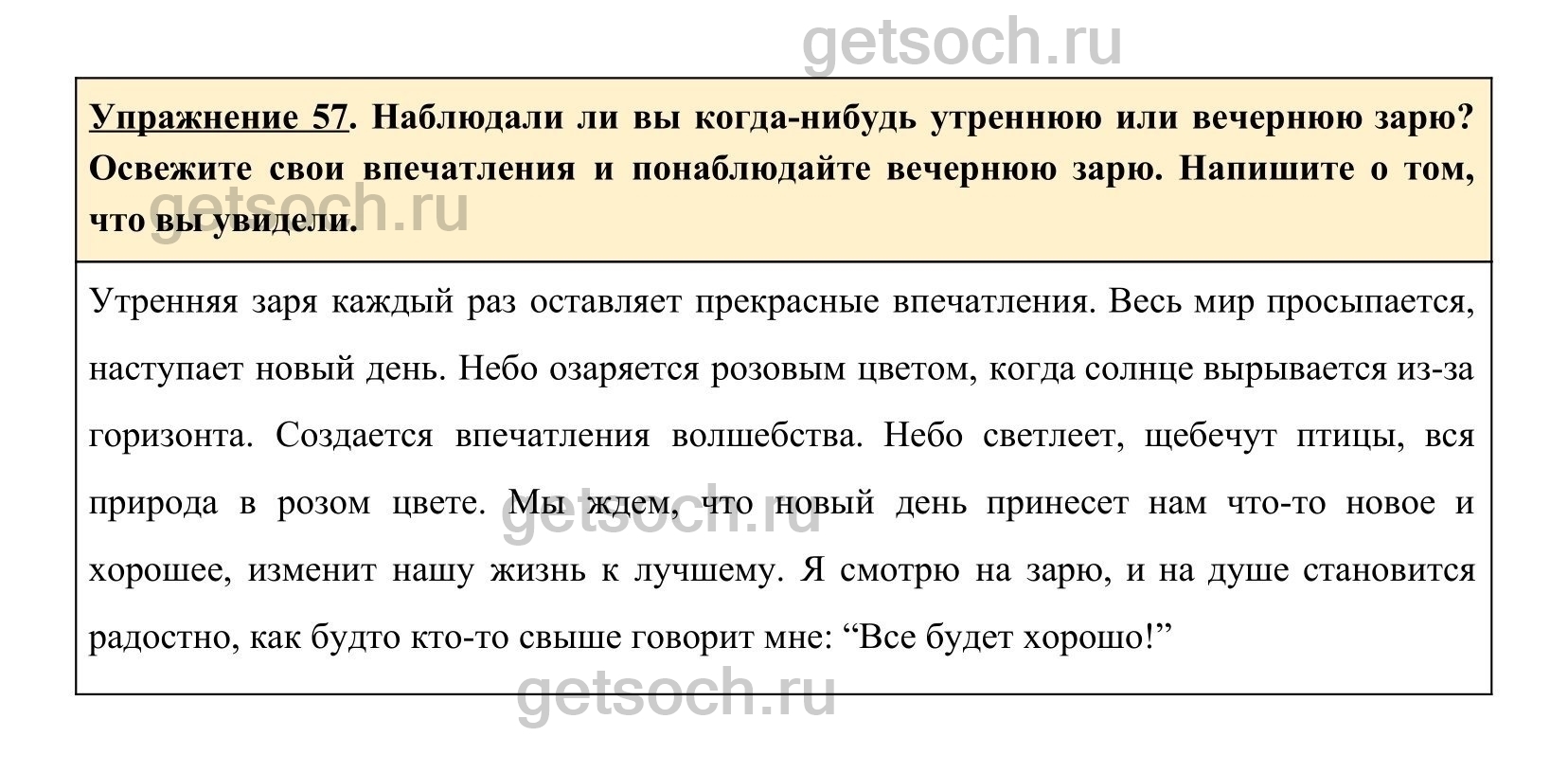 Упражнение 57. Наблюдали ли вы когда-нибудь утреннюю или вечернюю зарю? Освежите свои впечатления и понаблюдайте вечернюю зарю. Напишите о том, что вы увидели.