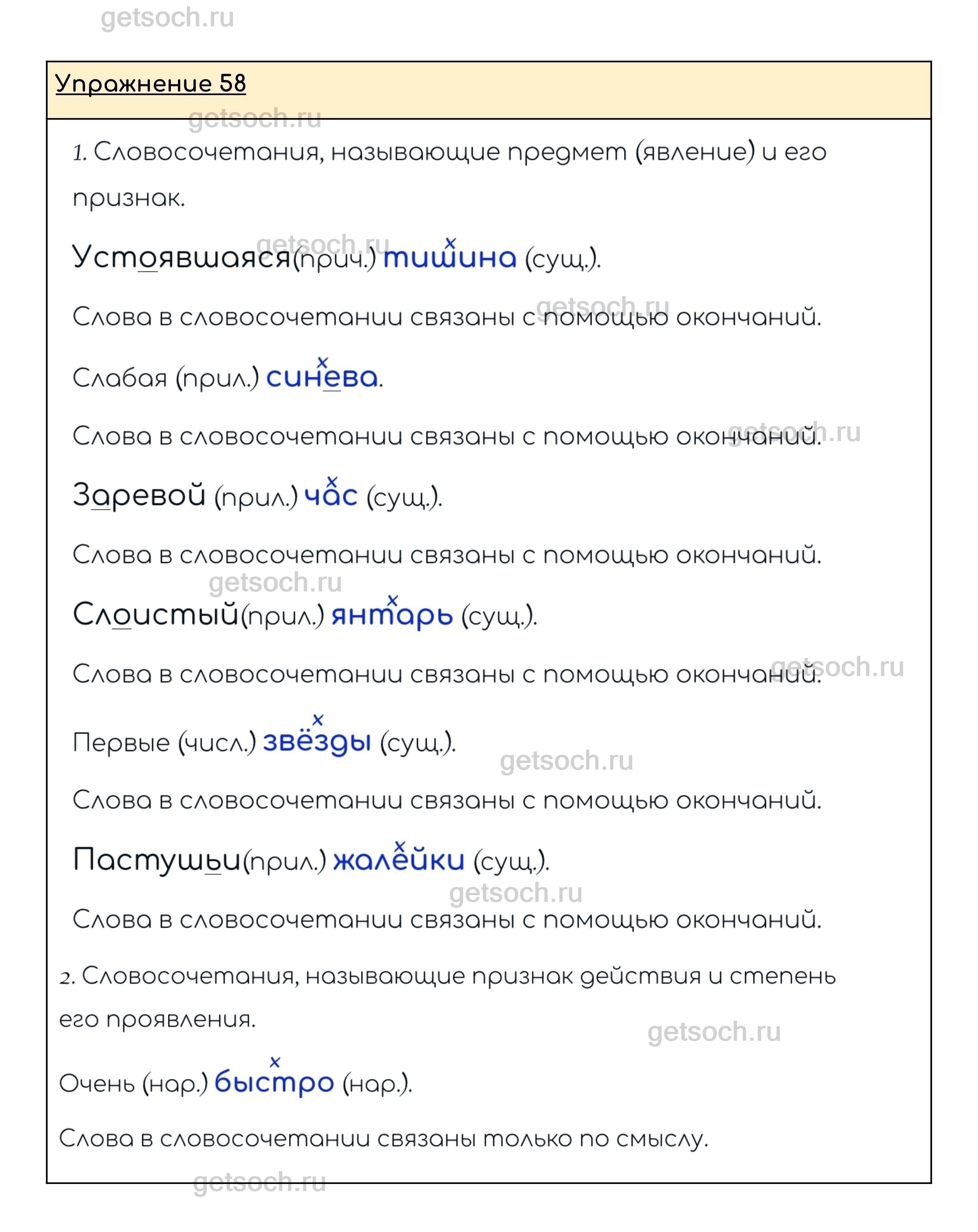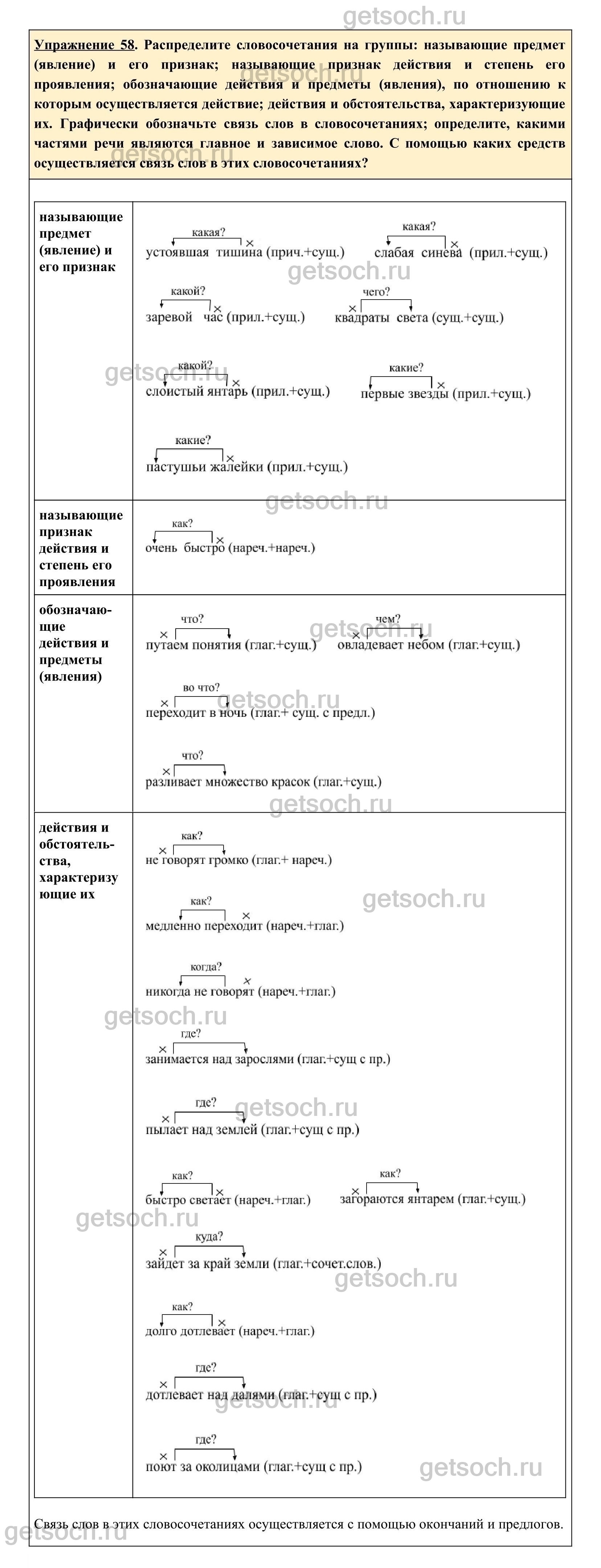 Рассмотрим ответы на Упражнение 58 из учебника по русскому языку для 8 класса Ладыженской