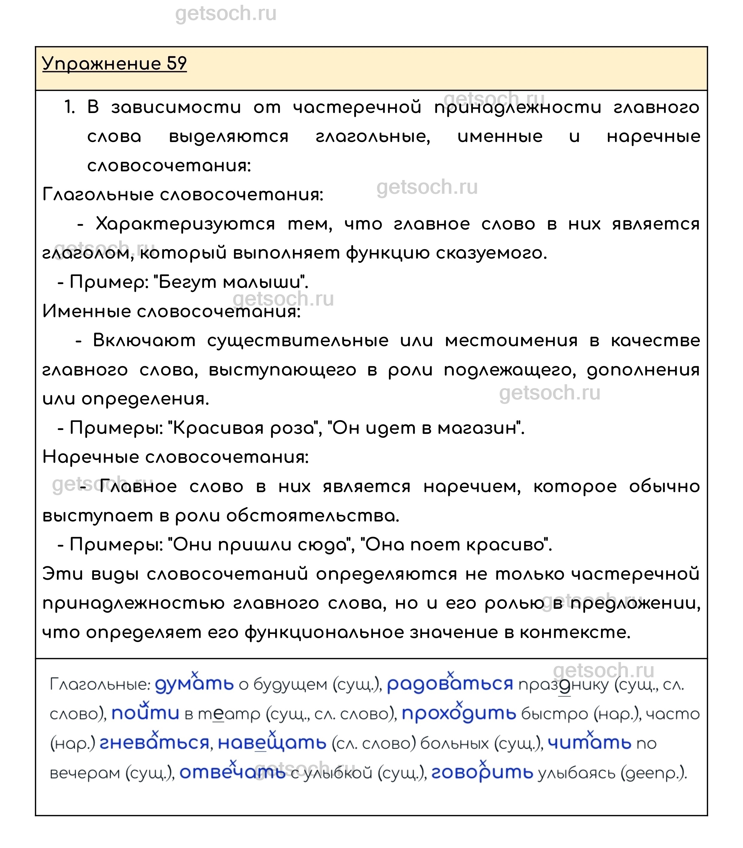 Рассмотрим ответы на Упражнение 59 из учебника по русскому языку для 8 класса Ладыженской