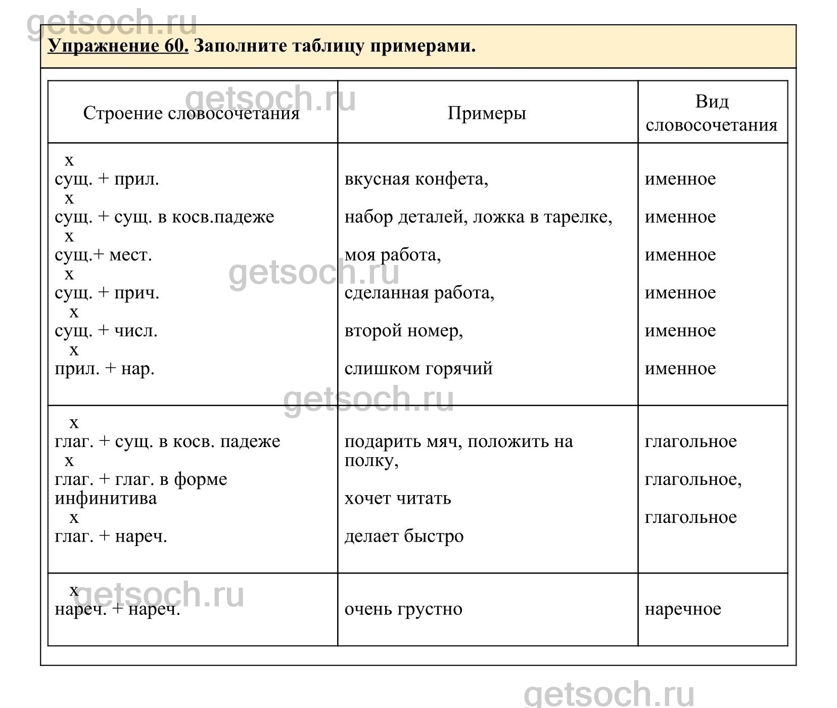 Упражнение 60. Заполните таблицу примерами.