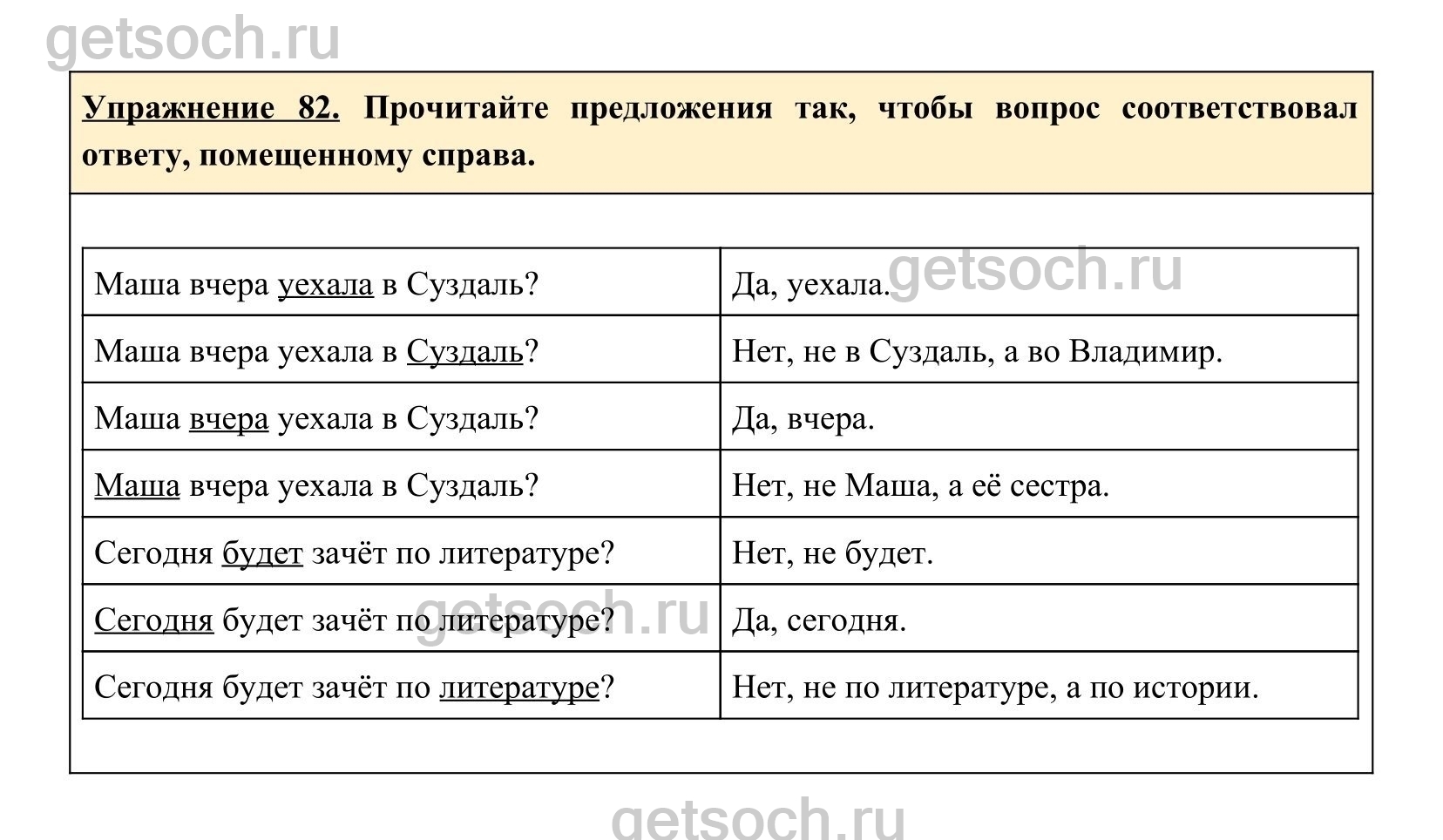 Упражнение 82. Прочитайте предложения так, чтобы вопрос соответствовал ответу, помещенному справа.