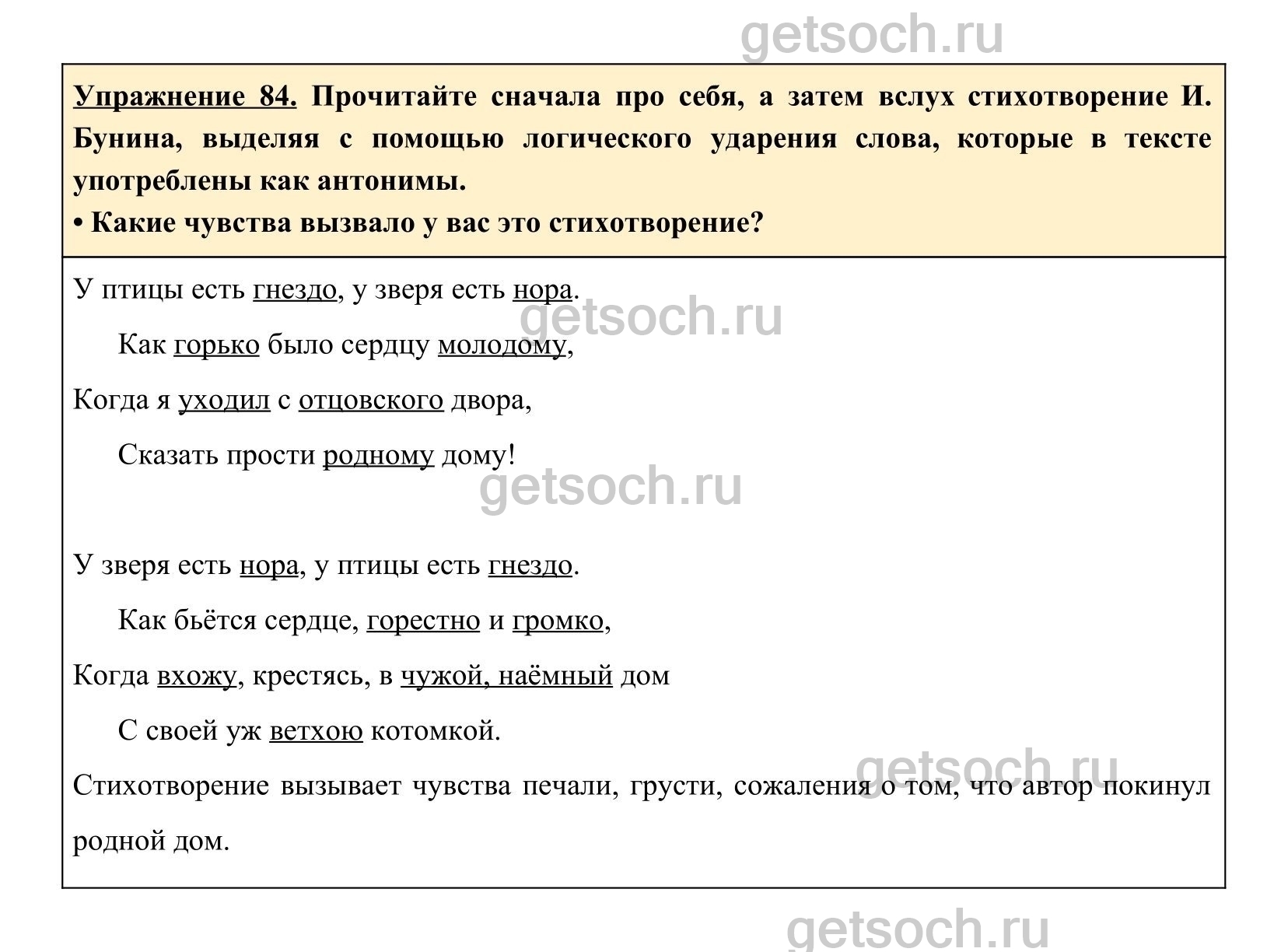Упражнение 84. Прочитайте сначала про себя, а затем вслух стихотворение И. Бунина, выделяя с помощью логического ударения слова, которые в тексте употреблены как антонимы.