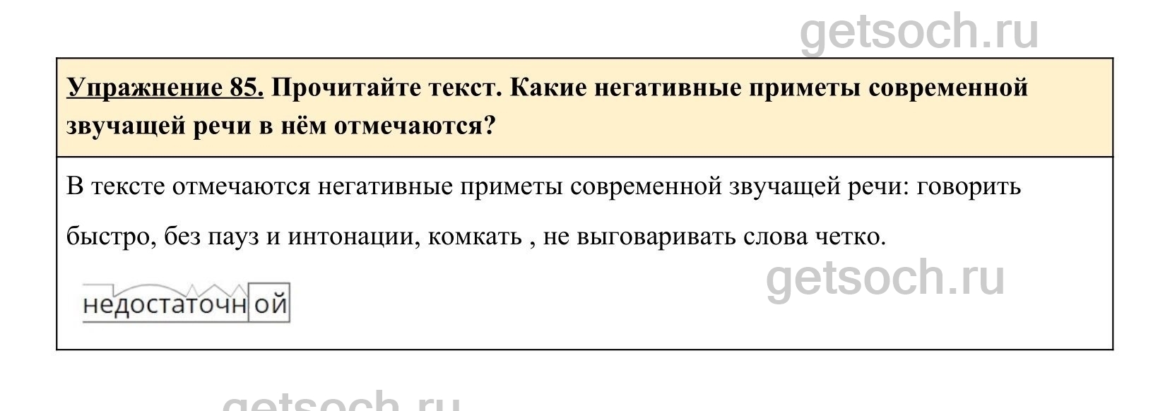 Упражнение 85. Прочитайте текст. Какие негативные приметы современной звучащей речи в нём отмечаются?