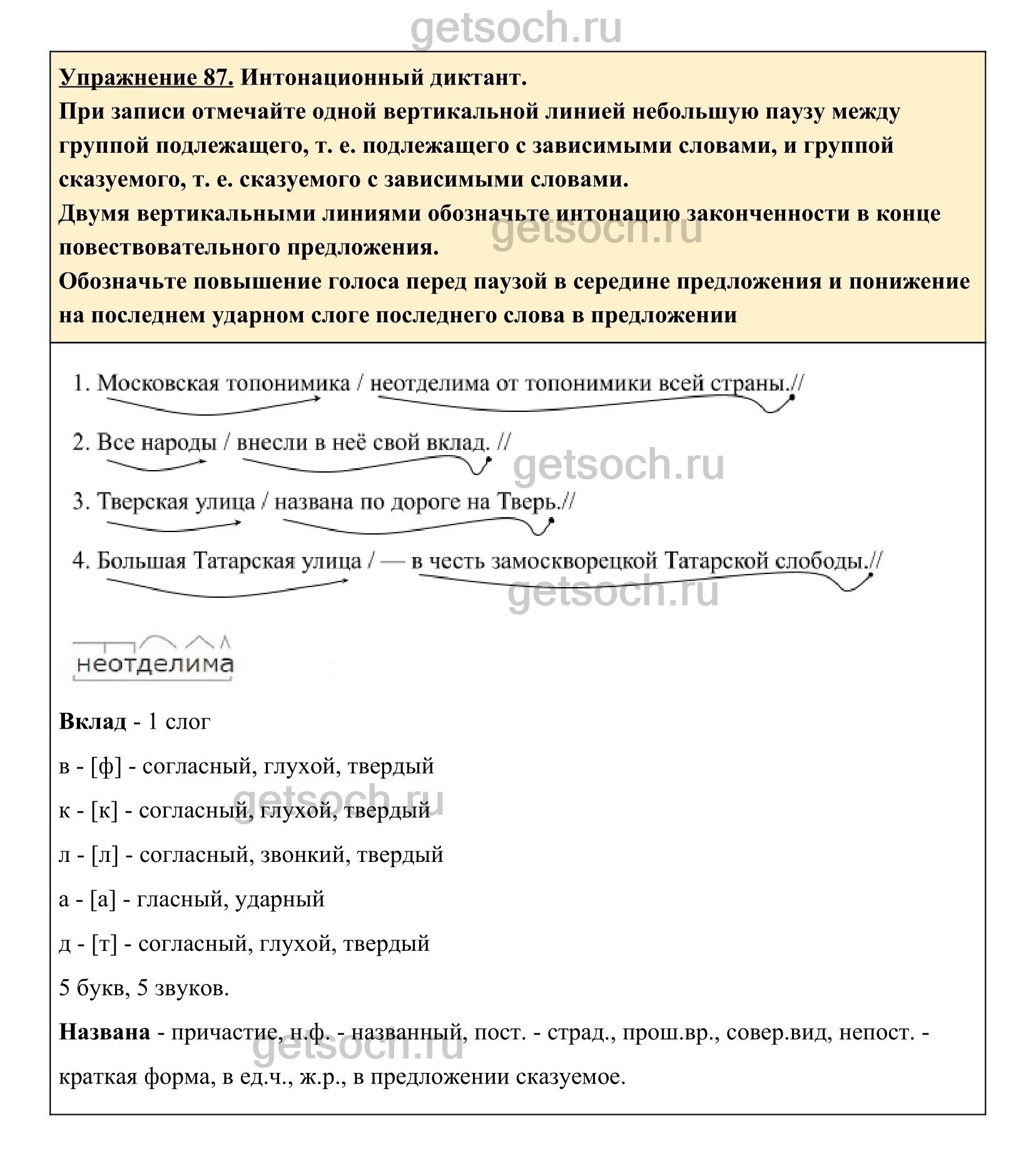 Рассмотрим ответы на Упражнение 87 из учебника по русскому языку для 8 класса Ладыженской