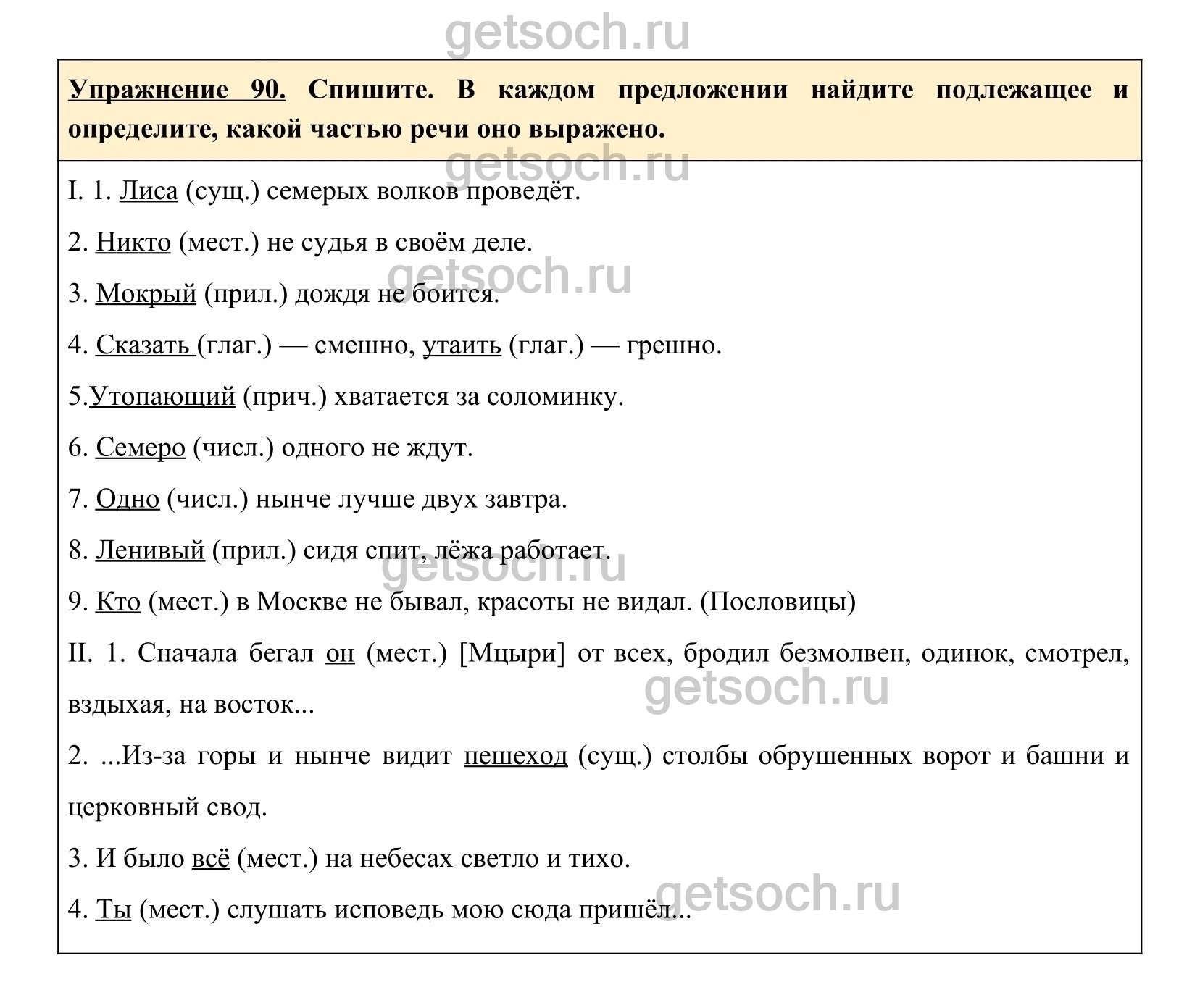 Упражнение 90. Спишите. В каждом предложении найдите подлежащее и определите, какой частью речи оно выражено.