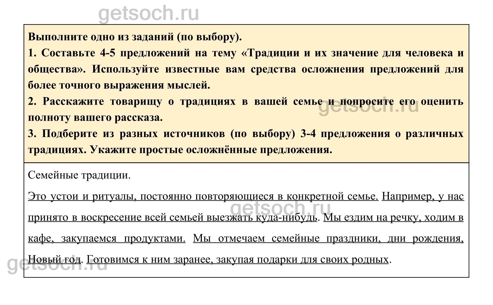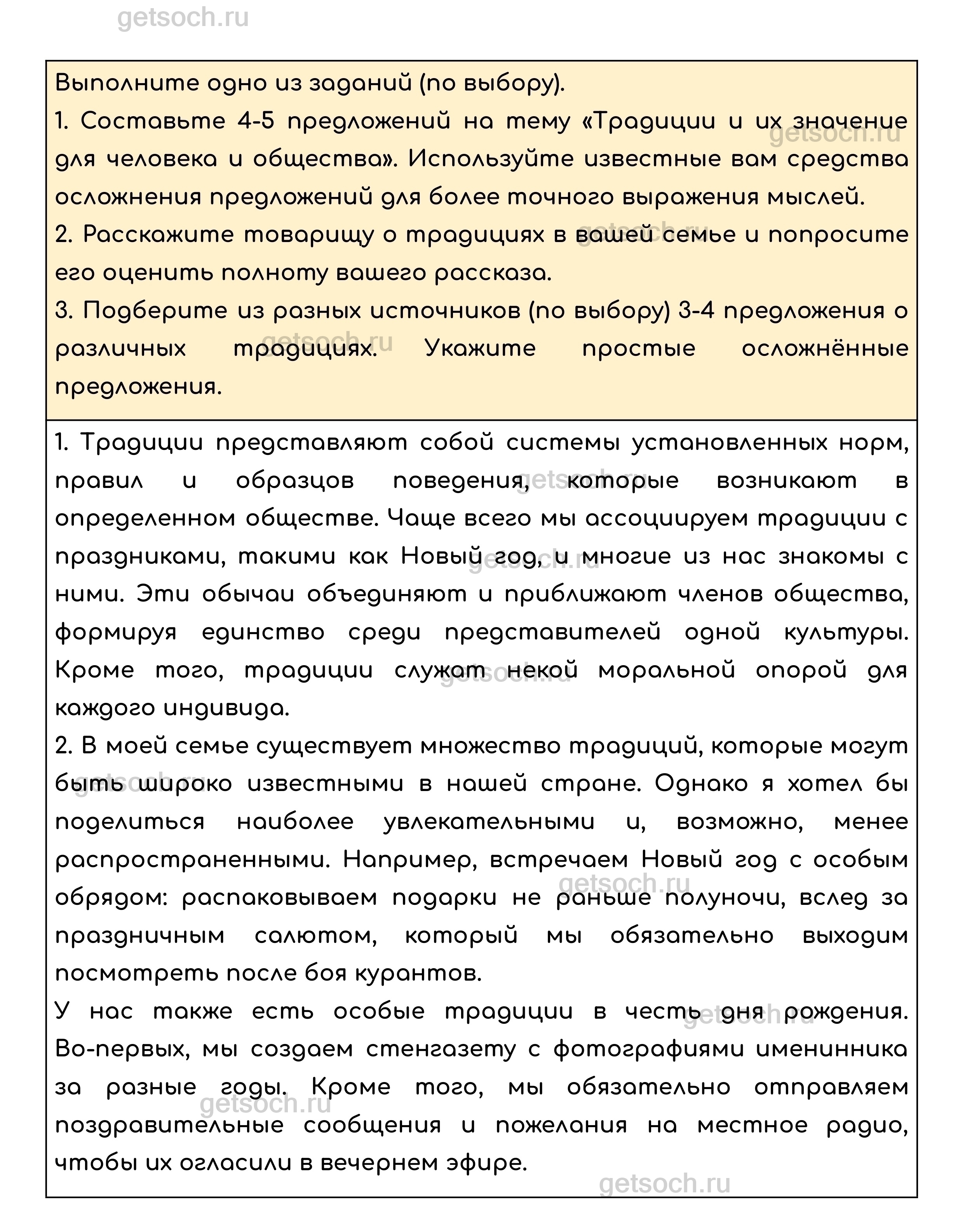 1. Составьте 4-5 предложений на тему «Традиции и их значение для человека и общества». Используйте известные вам средства осложнения предложений для более точного выражения мыслей.