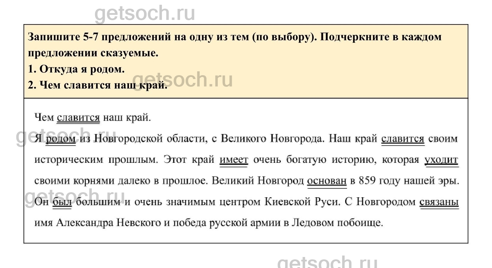 Запишите 5-7 предложений на одну из тем (по выбору). Подчеркните в каждом предложении сказуемые.