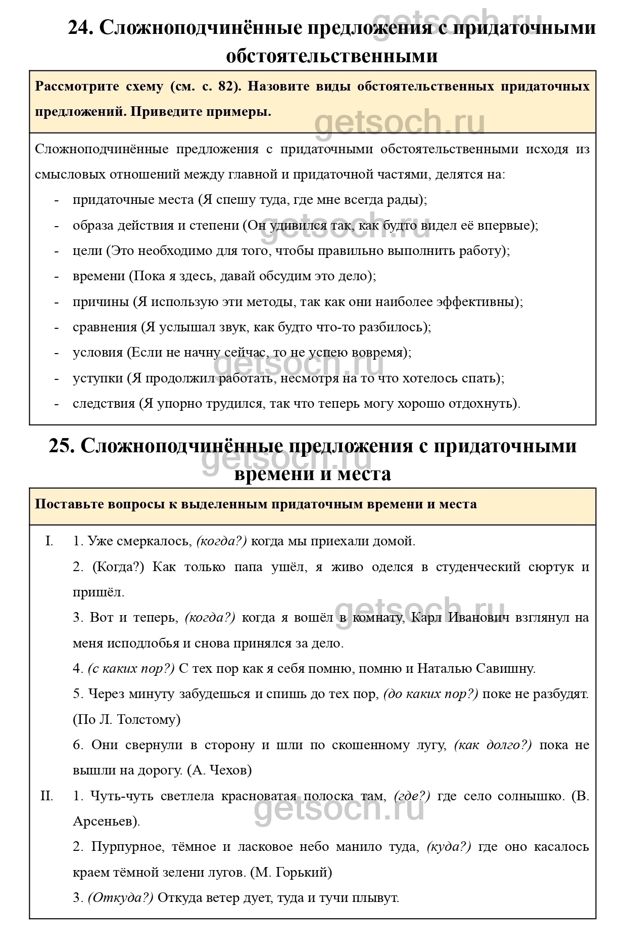 Рассмотрите схему (см. с. 82). Назовите виды обстоятельственных придаточных предложений. Приведите примеры.