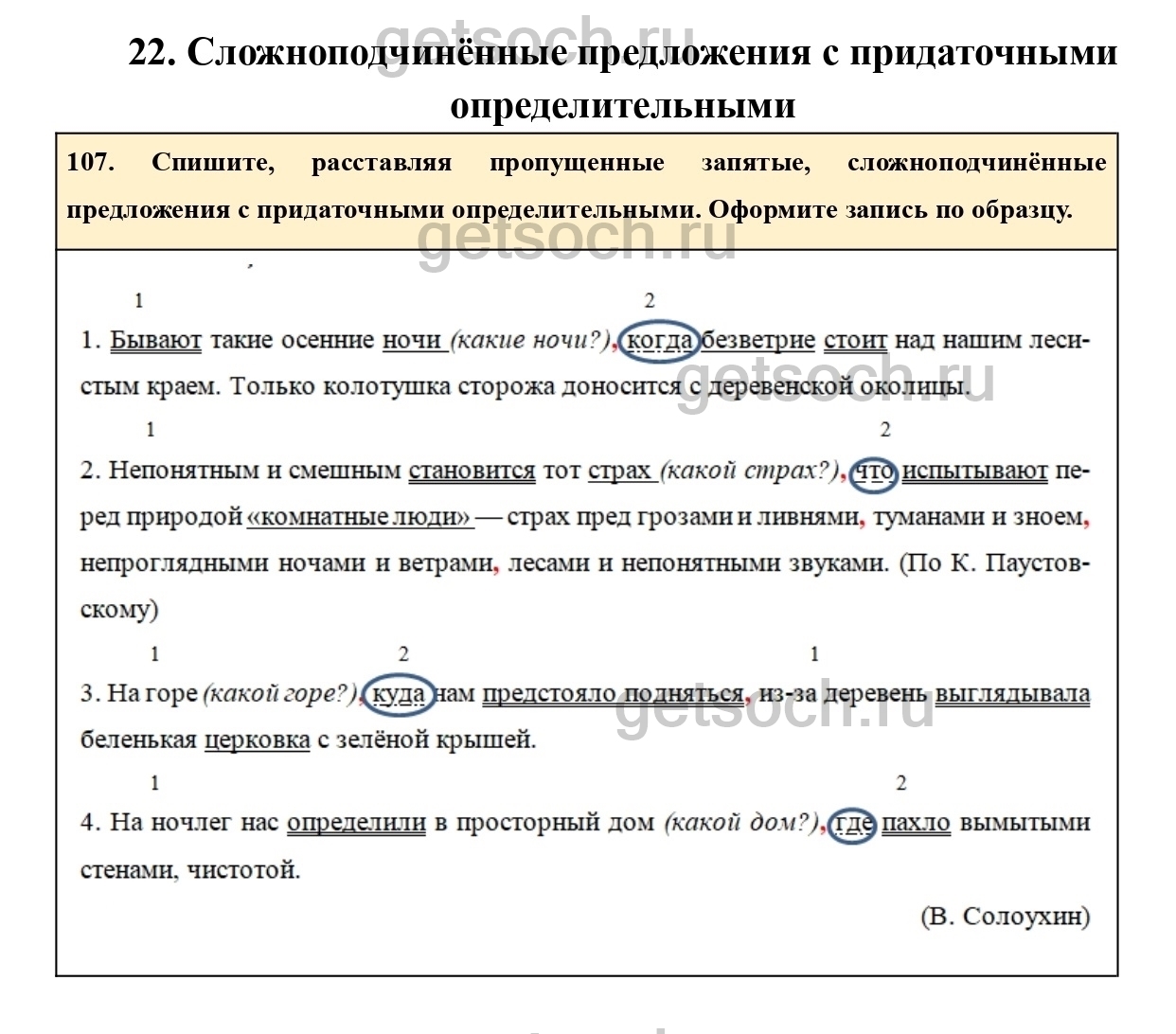 107. Спишите, расставляя пропущенные запятые, сложноподчинённые предложения с придаточными определительными. Оформите запись по образцу.