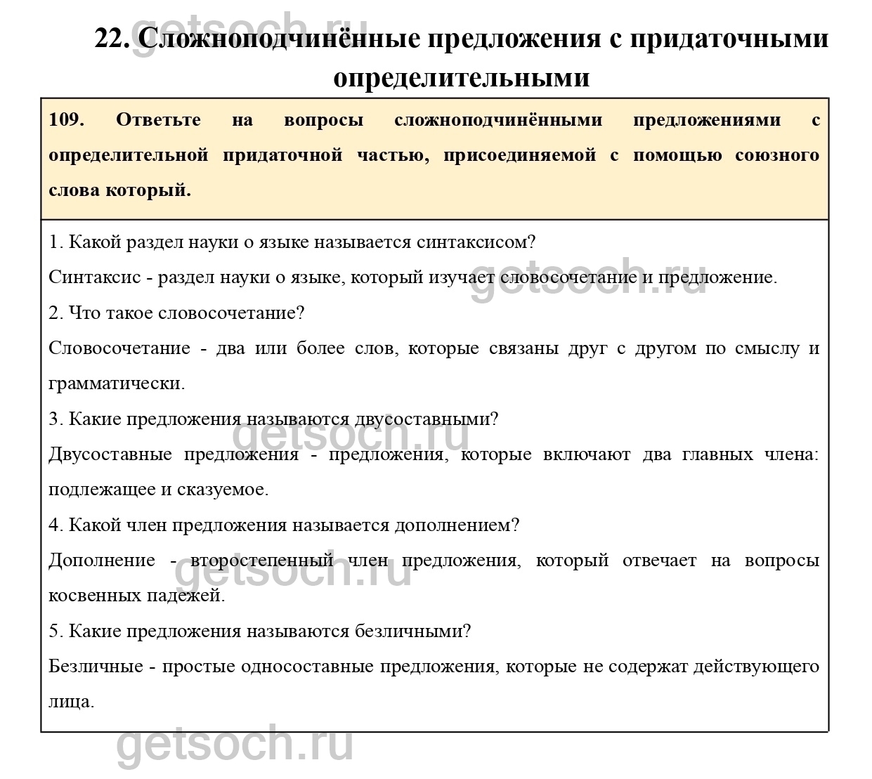 109. Ответьте на вопросы сложноподчинёнными предложениями с определительной придаточной частью, присоединяемой с помощью союзного слова который.