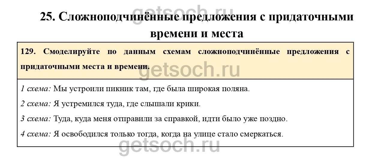 129. Смоделируйте по данным схемам сложноподчинённые предложения с придаточными места и времени.