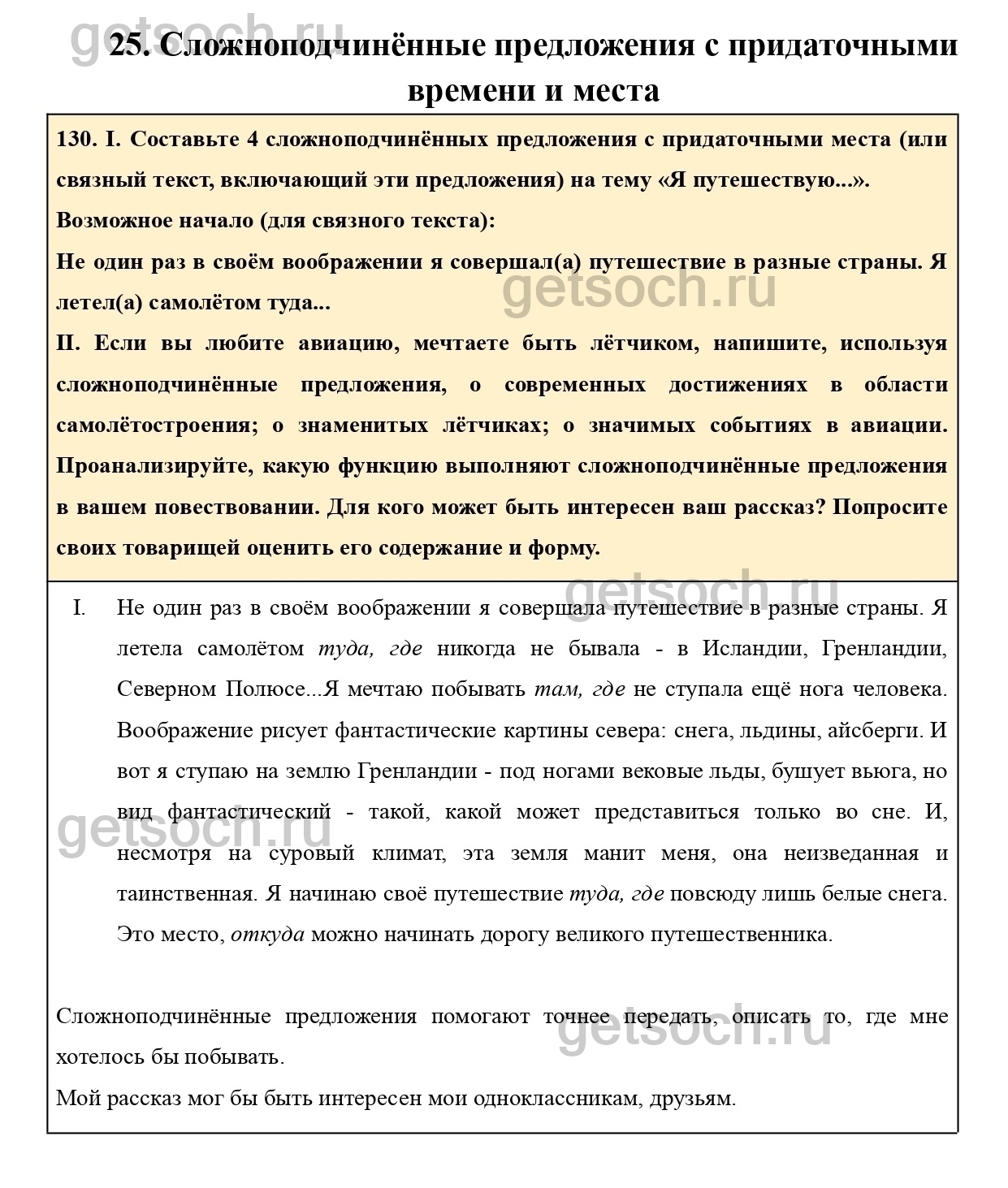 130. I. Составьте 4 сложноподчинённых предложения с придаточными места (или связный текст, включающий эти предложения) на тему «Я путешествую…».