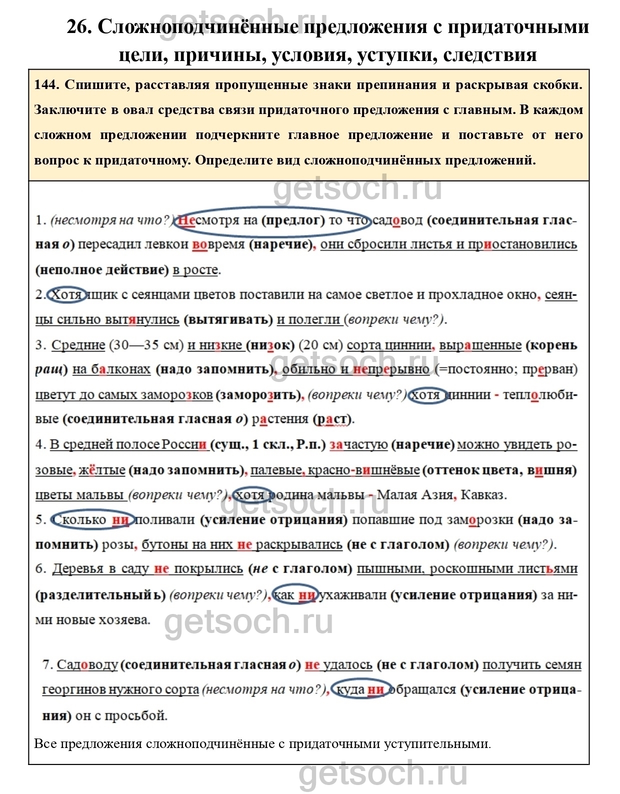 144. Спишите, расставляя пропущенные знаки препинания и раскрывая скобки. Заключите в овал средства связи придаточного предложения с главным. В каждом сложном предложении подчеркните главное предложение и поставьте от него вопрос к придаточному. Определите вид сложноподчинённых предложений.