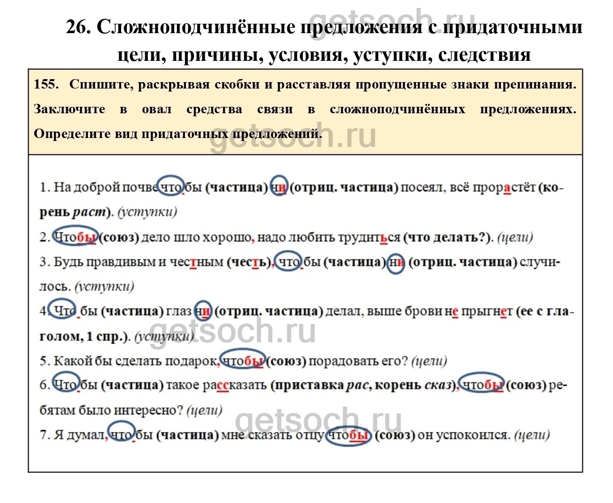 155. Спишите, раскрывая скобки и расставляя пропущенные знаки препинания. Заключите в овал средства связи в сложноподчинённых предложениях. Определите вид придаточных предложений.