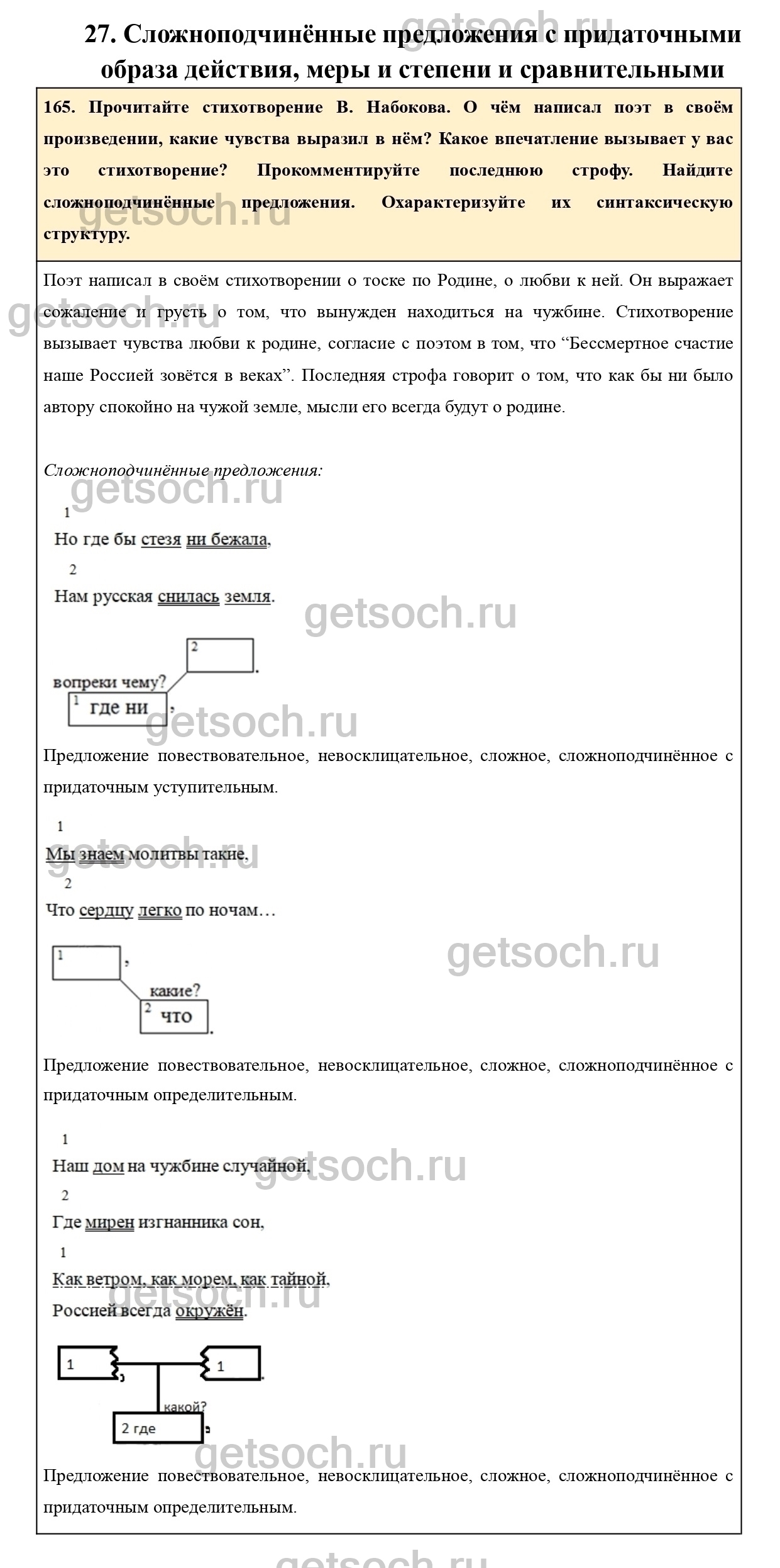 165. Прочитайте стихотворение В. Набокова. О чём написал поэт в своём произведении, какие чувства выразил в нём? Какое впечатление вызывает у вас это стихотворение? Прокомментируйте последнюю строфу. Найдите сложноподчинённые предложения. Охарактеризуйте их синтаксическую структуру.