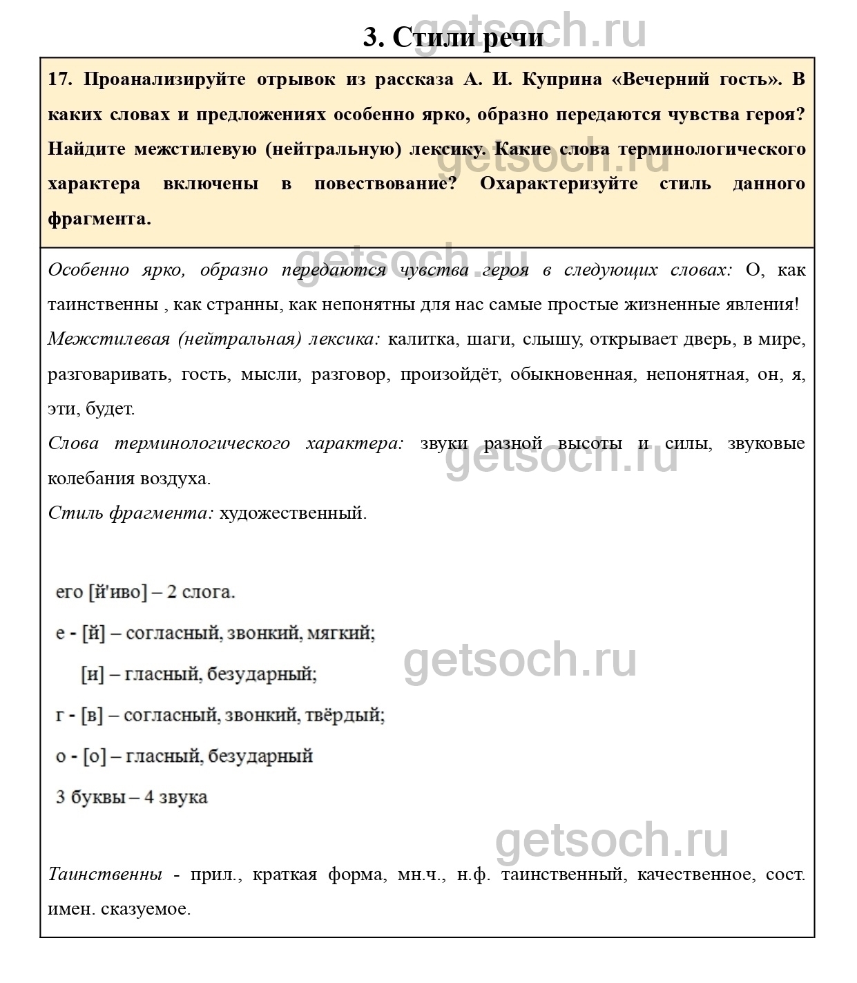 17. Проанализируйте отрывок из рассказа А. И. Куприна «Вечерний гость». В каких словах и предложениях особенно ярко, образно передаются чувства героя? Найдите межстилевую (нейтральную) лексику. Какие слова терминологического характера включены в повествование? Охарактеризуйте стиль данного фрагмента.