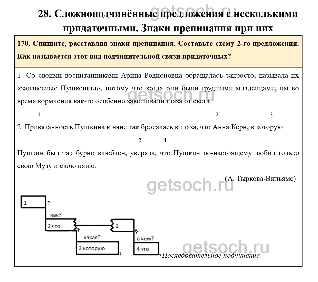170. Спишите, расставляя знаки препинания. Составьте схему 2-го предложения. Как называется этот вид подчинительной связи придаточных?