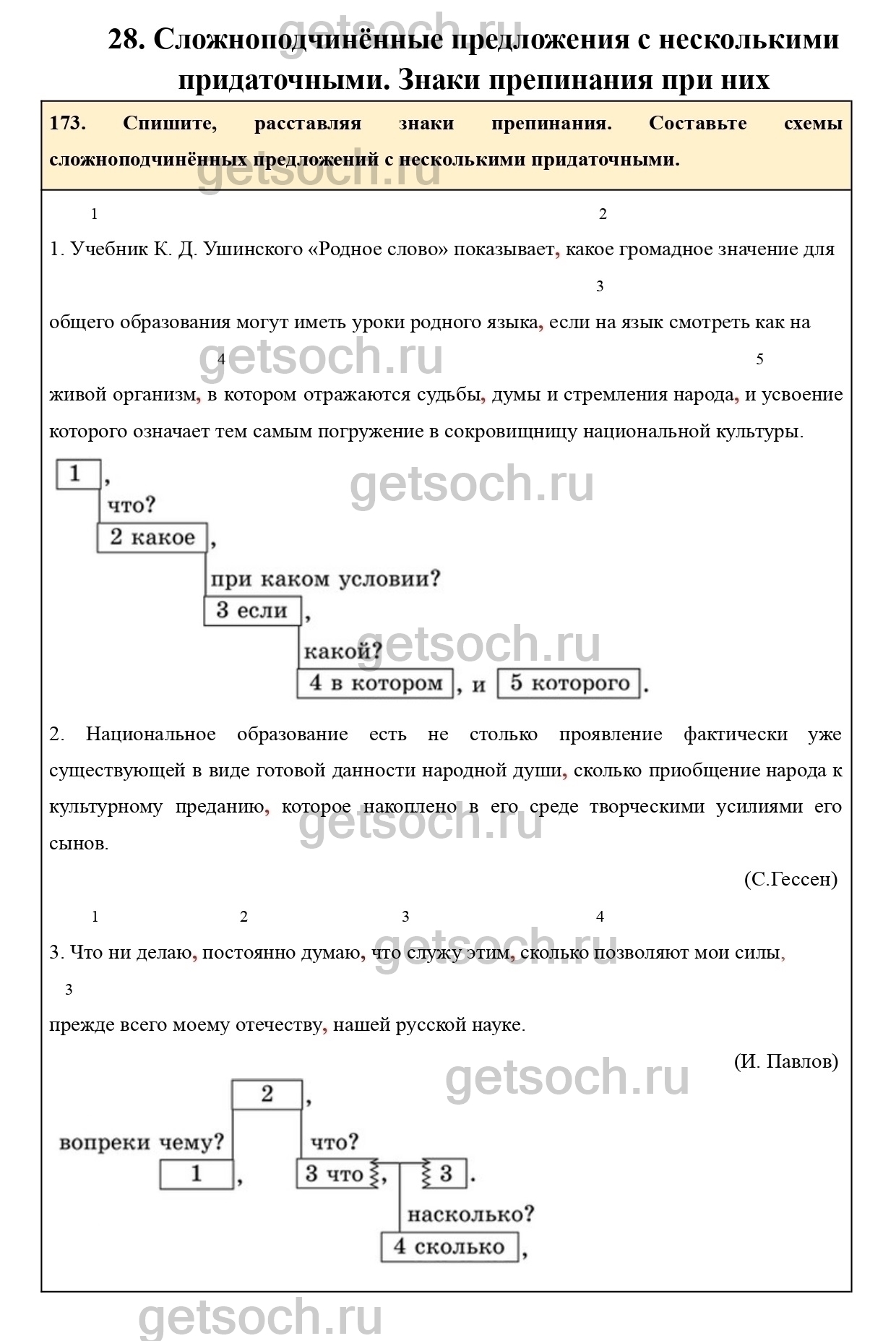 Рассмотрим ответы на Упражнение 173 из учебника по русскому языку для 9 класса Ладыженской