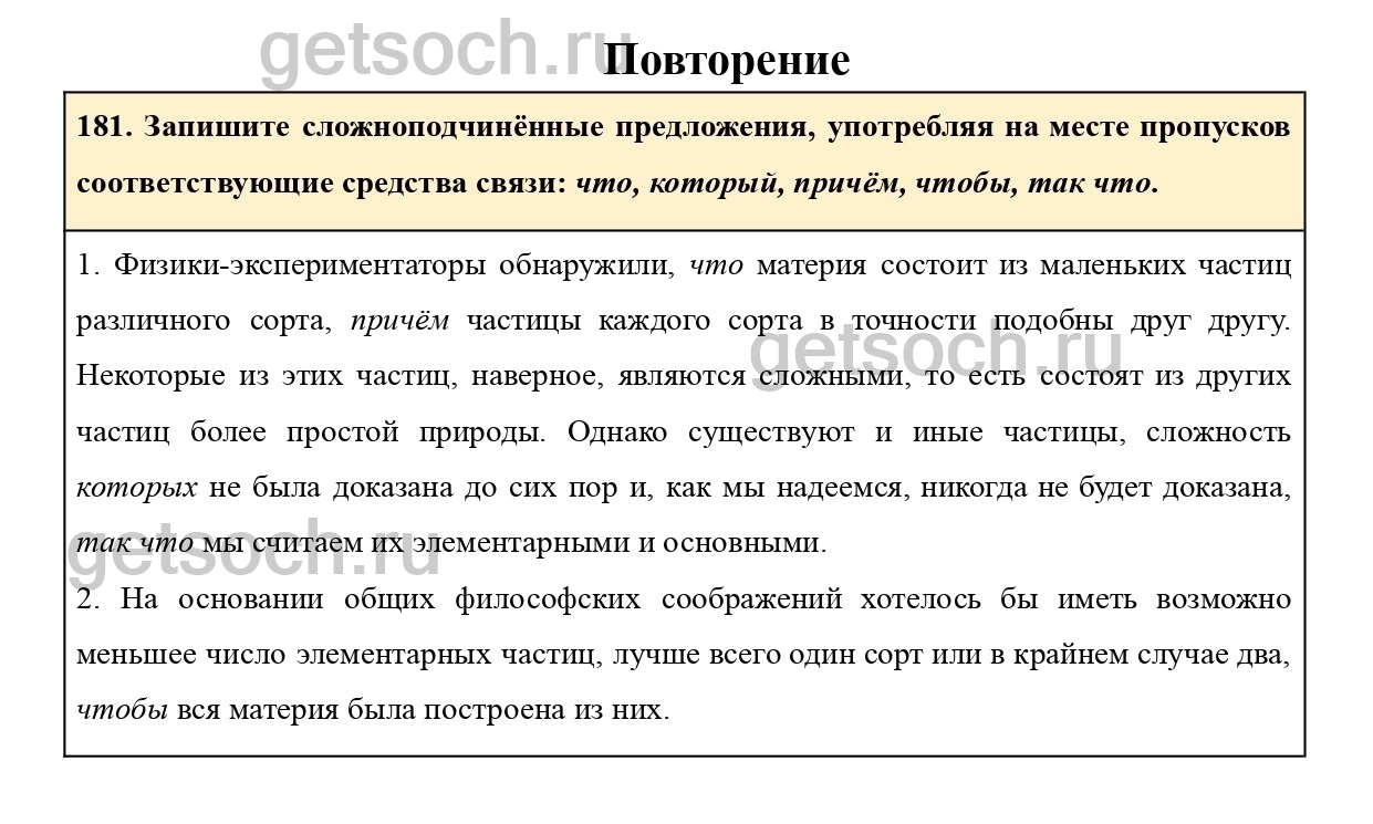 181. Запишите сложноподчинённые предложения, употребляя на месте пропусков соответствующие средства связи: что, который, причём, чтобы, так что.