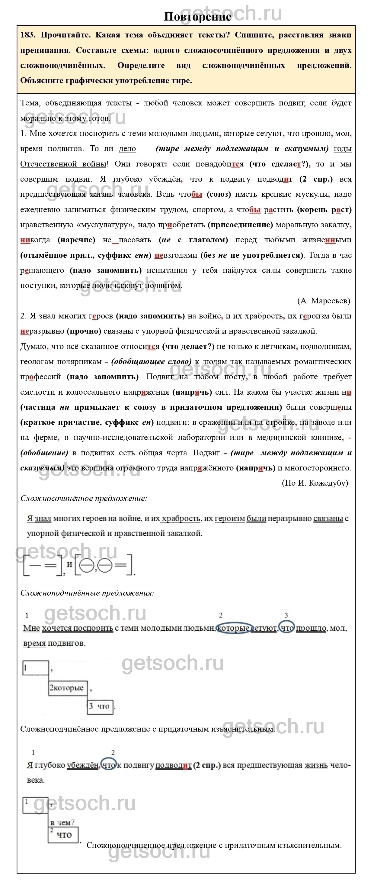 Рассмотрим ответы на Упражнение 183 из учебника по русскому языку для 9 класса Ладыженской