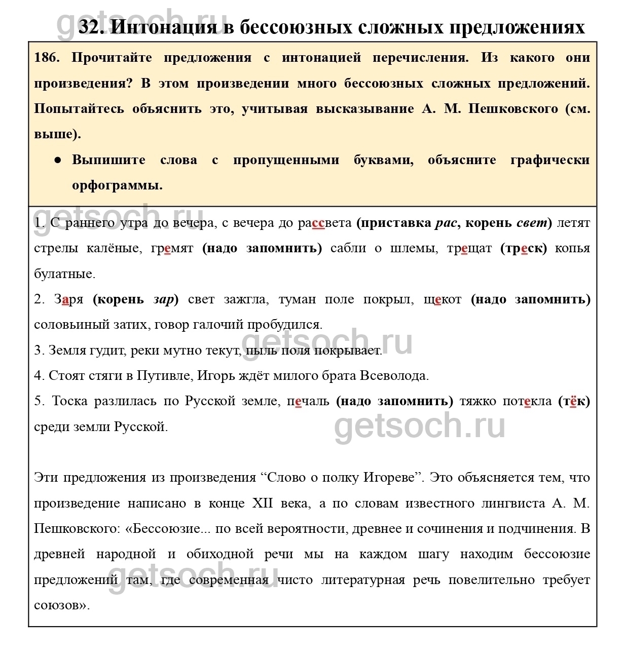 Рассмотрим ответы на Упражнение 186 из учебника по русскому языку для 9 класса Ладыженской