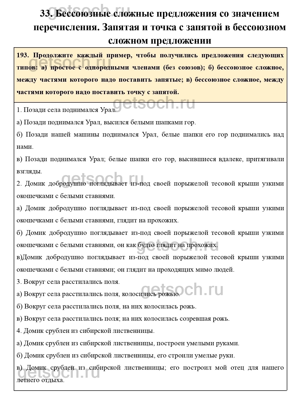 193. Продолжите каждый пример, чтобы получились предложения следующих типов: а) простое с однородными членами (без союзов); б) бессоюзное сложное, между частями которого надо поставить запятые; в) бессоюзное сложное, между частями которого надо поставить точку с запятой.