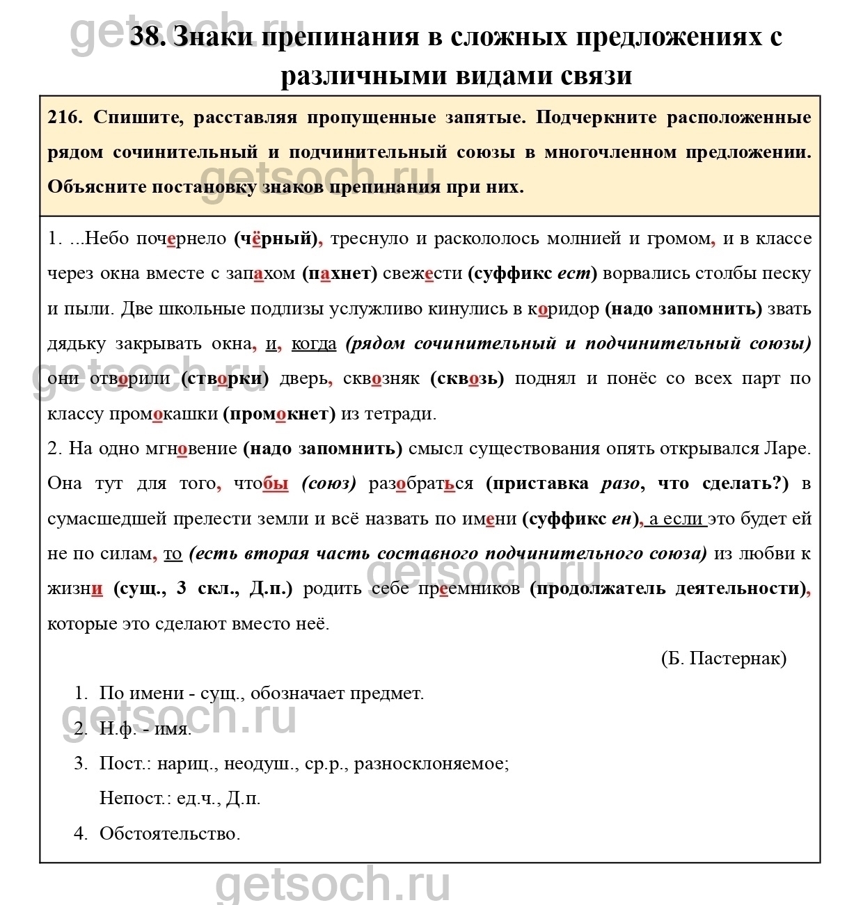 Рассмотрим ответы на Упражнение 216 из учебника по русскому языку для 9 класса Ладыженской