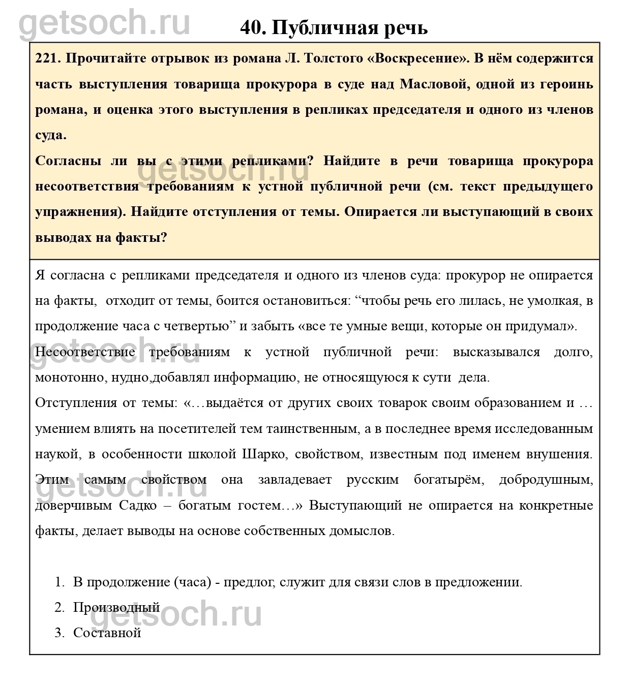 221. Прочитайте отрывок из романа Л. Толстого «Воскресение». В нём содержится часть выступления товарища прокурора в суде над Масловой, одной из героинь романа, и оценка этого выступления в репликах председателя и одного из членов суда.