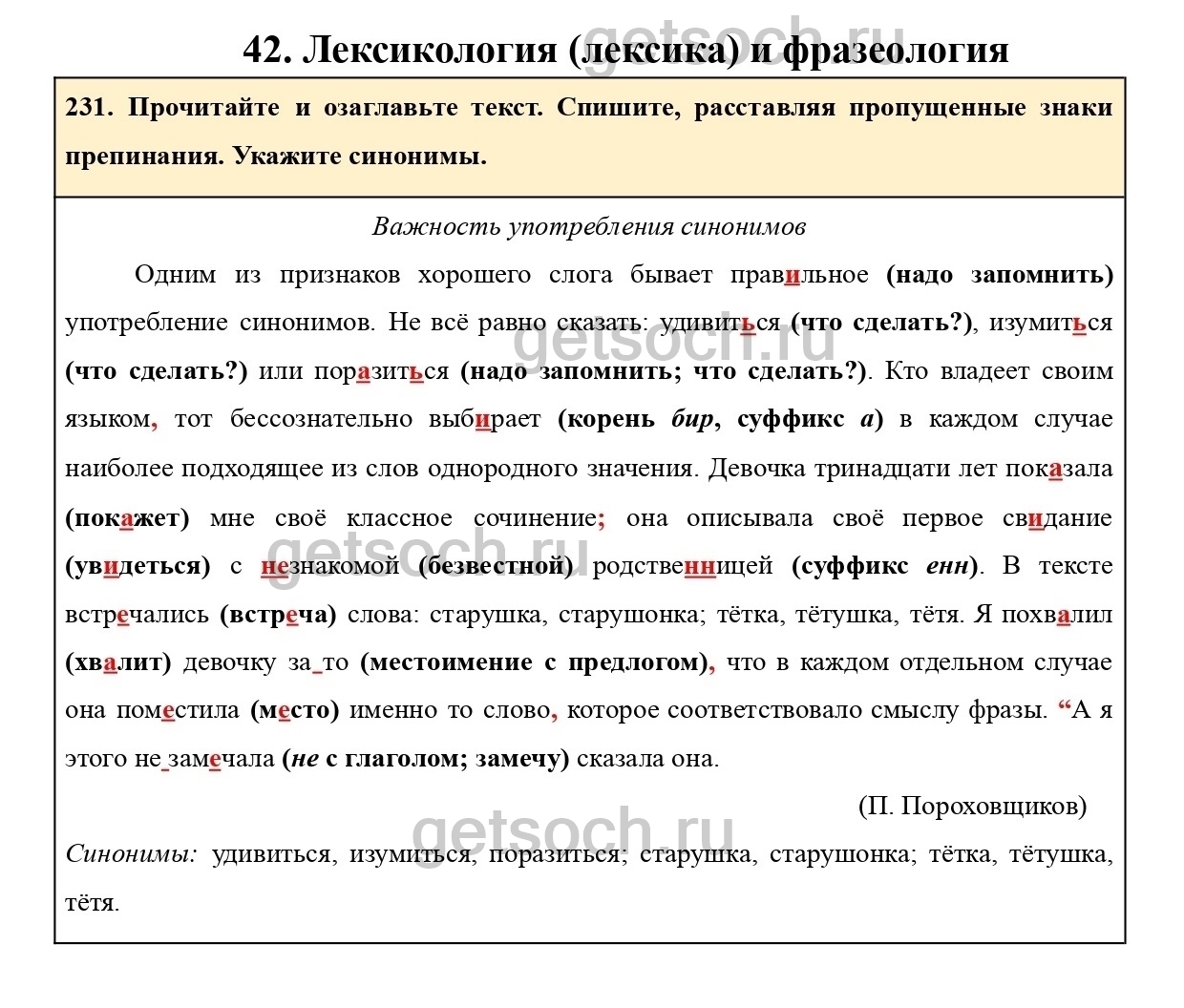 231. Прочитайте и озаглавьте текст. Спишите, расставляя пропущенные знаки препинания. Укажите синонимы.