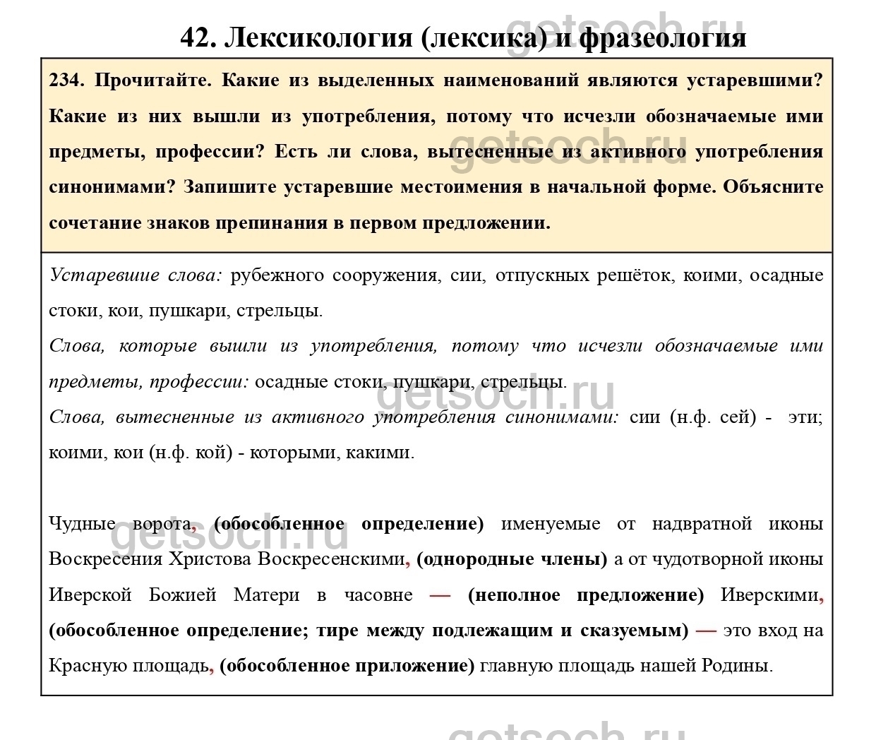 234. Прочитайте. Какие из выделенных наименований являются устаревшими? Какие из них вышли из употребления, потому что исчезли обозначаемые ими предметы, профессии? Есть ли слова, вытесненные из активного употребления синонимами? Запишите устаревшие местоимения в начальной форме. Объясните сочетание знаков препинания в первом предложении.