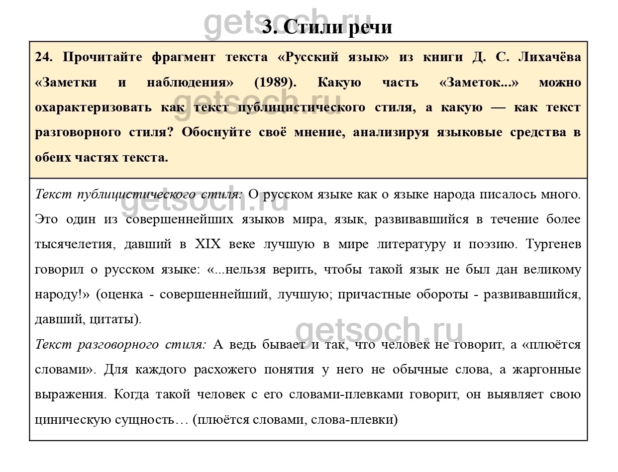 24. Прочитайте фрагмент текста «Русский язык» из книги Д. С. Лихачёва «Заметки и наблюдения» (1989). Какую часть «Заметок…» можно охарактеризовать как текст публицистического стиля, а какую — как текст разговорного стиля? Обоснуйте своё мнение, анализируя языковые средства в обеих частях текста.
