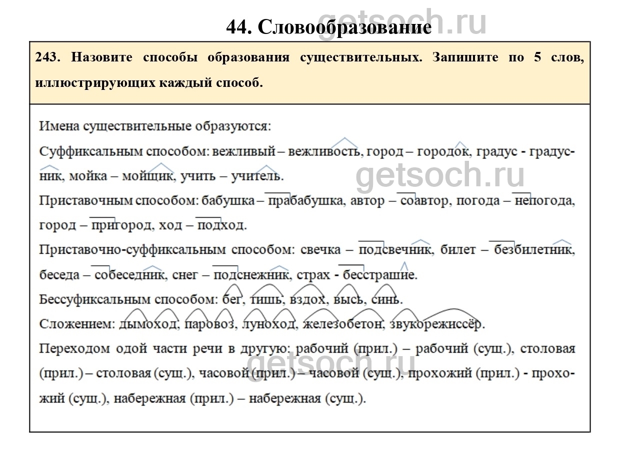 243. Назовите способы образования существительных. Запишите по 5 слов, иллюстрирующих каждый способ.
