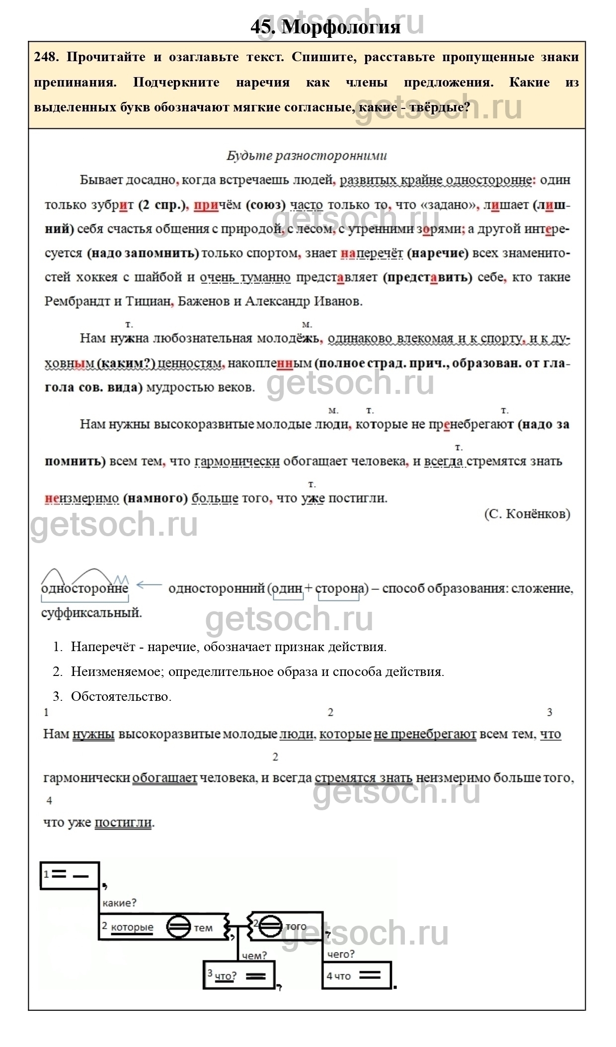 248. Прочитайте и озаглавьте текст. Спишите, расставьте пропущенные знаки препинания. Подчеркните наречия как члены предложения. Какие из выделенных букв обозначают мягкие согласные, какие – твёрдые?