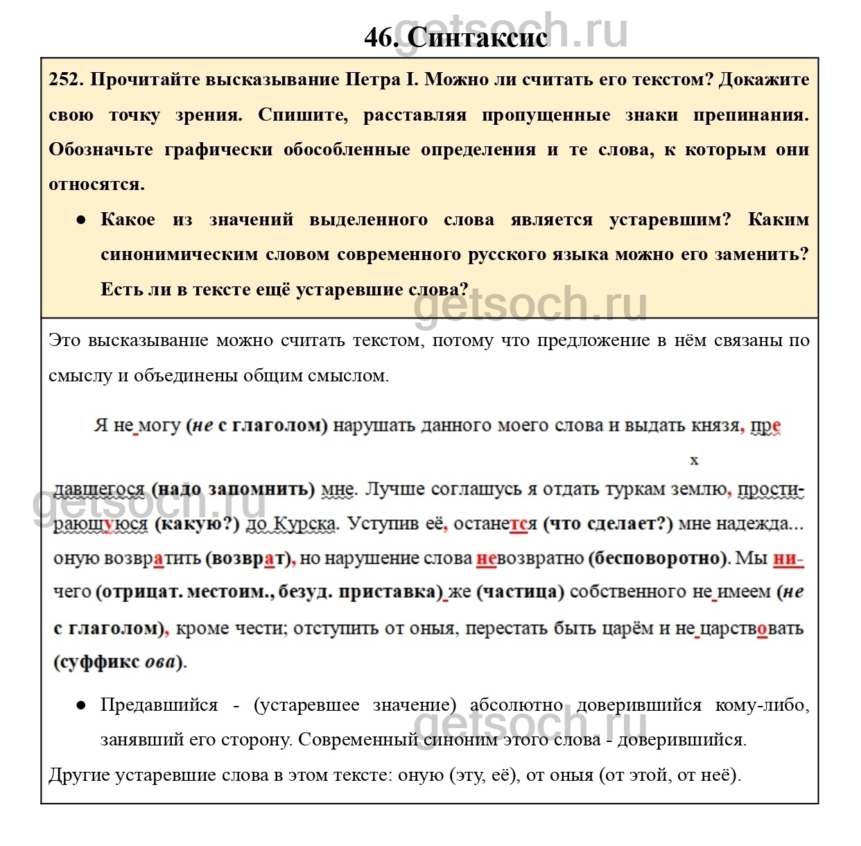 Рассмотрим ответы на Упражнение 252 из учебника по русскому языку для 9 класса Ладыженской