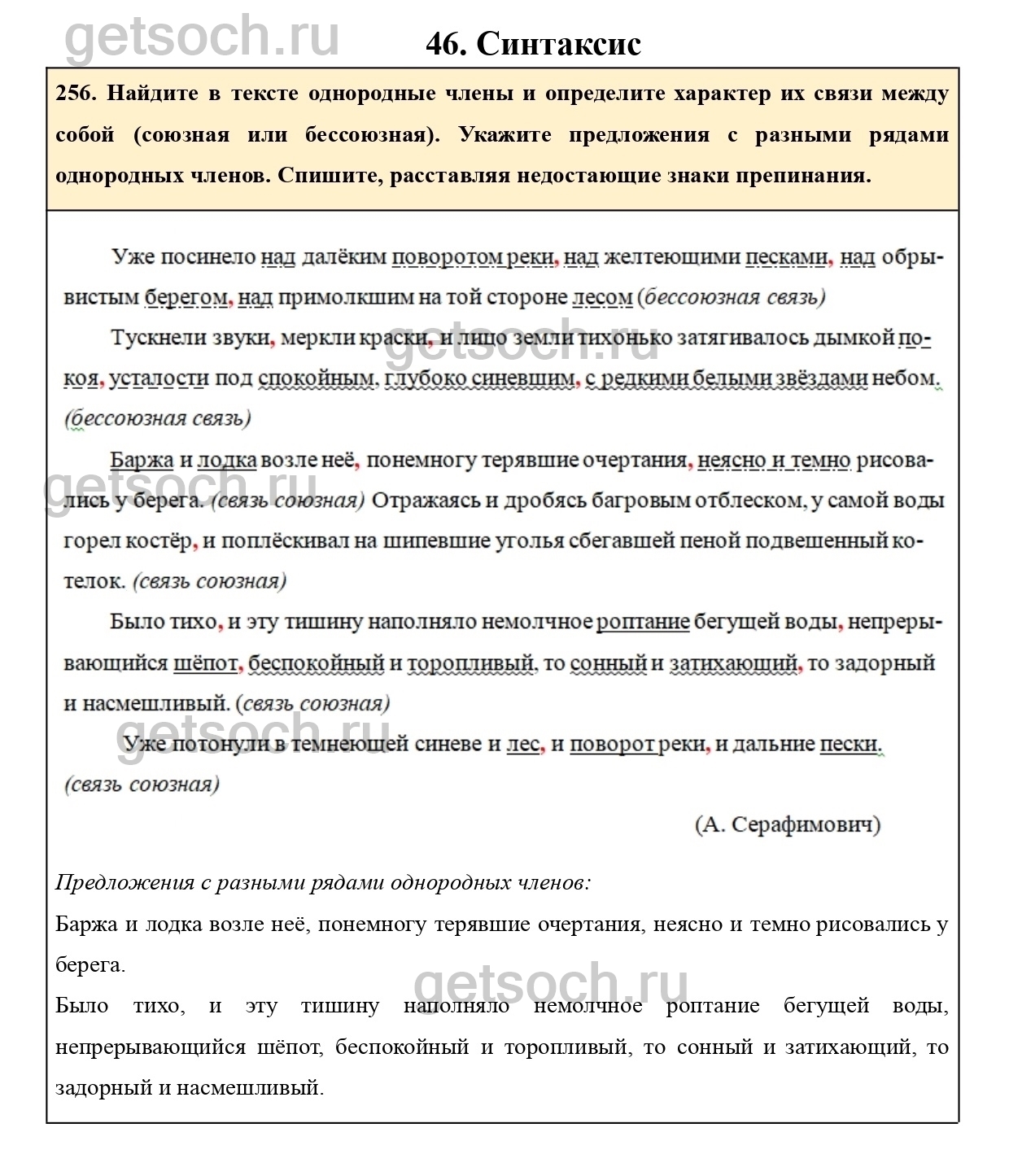 256. Найдите в тексте однородные члены и определите характер их связи между собой (союзная или бессоюзная). Укажите предложения с разными рядами однородных членов. Спишите, расставляя недостающие знаки препинания.