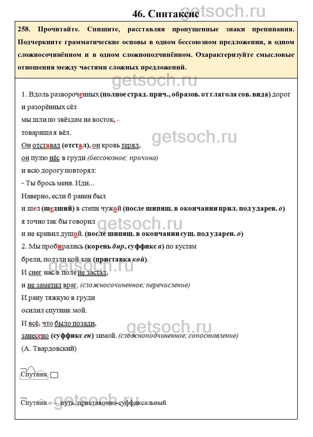 Рассмотрим ответы на Упражнение 258 из учебника по русскому языку для 9 класса Ладыженской