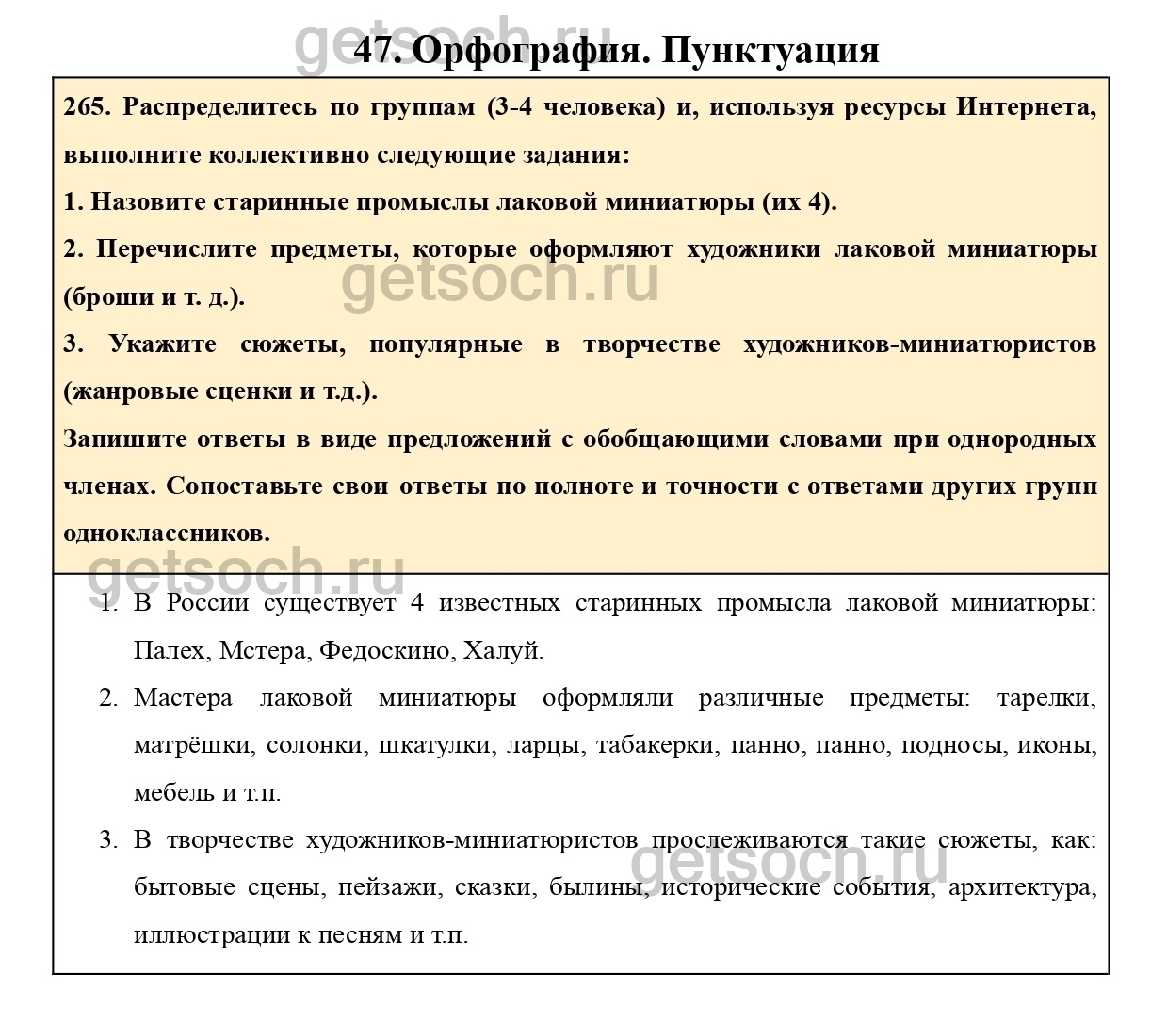 Рассмотрим ответы на Упражнение 265 из учебника по русскому языку для 9 класса Ладыженской