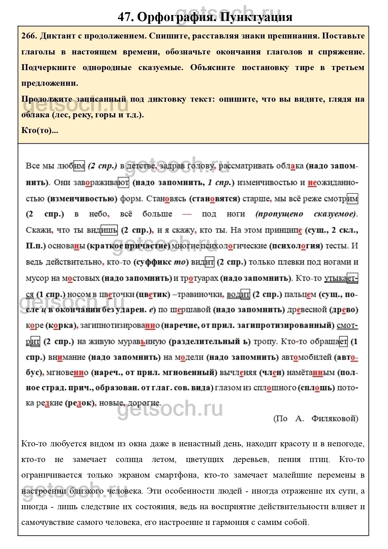 266. Диктант с продолжением. Спишите, расставляя знаки препинания. Поставьте глаголы в настоящем времени, обозначьте окончания глаголов и спряжение. Подчеркните однородные сказуемые. Объясните постановку тире в третьем предложении.
