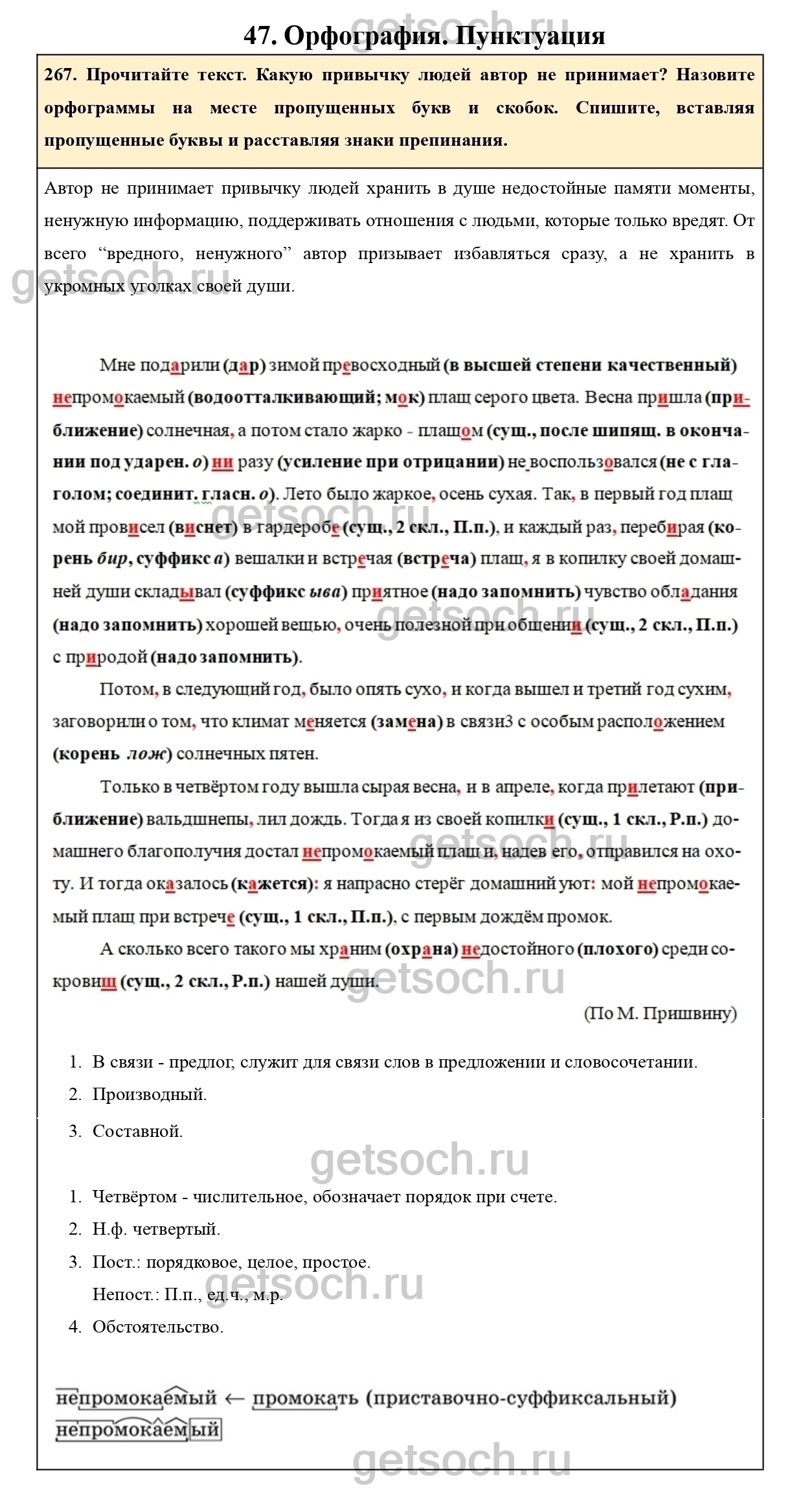 Рассмотрим ответы на Упражнение 267 из учебника по русскому языку для 9 класса Ладыженской