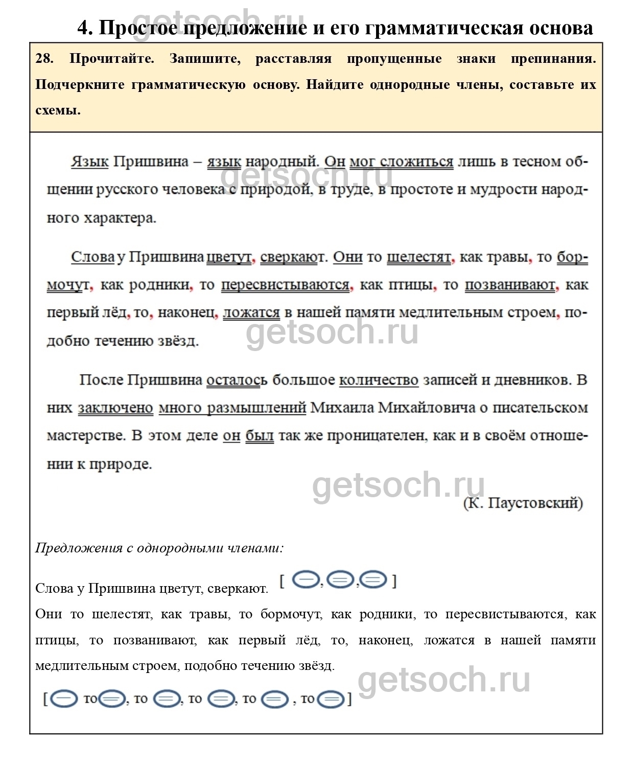 28. Прочитайте. Запишите, расставляя пропущенные знаки препинания. Подчеркните грамматическую основу. Найдите однородные члены, составьте их схемы.