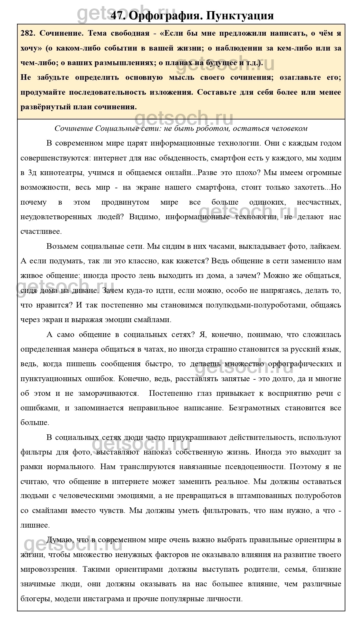 282. Сочинение. Тема свободная – «Если бы мне предложили написать, о чём я хочу» (о каком-либо событии в вашей жизни; о наблюдении за кем-либо или за чем-либо; о ваших размышлениях; о планах на будущее и т.д.).