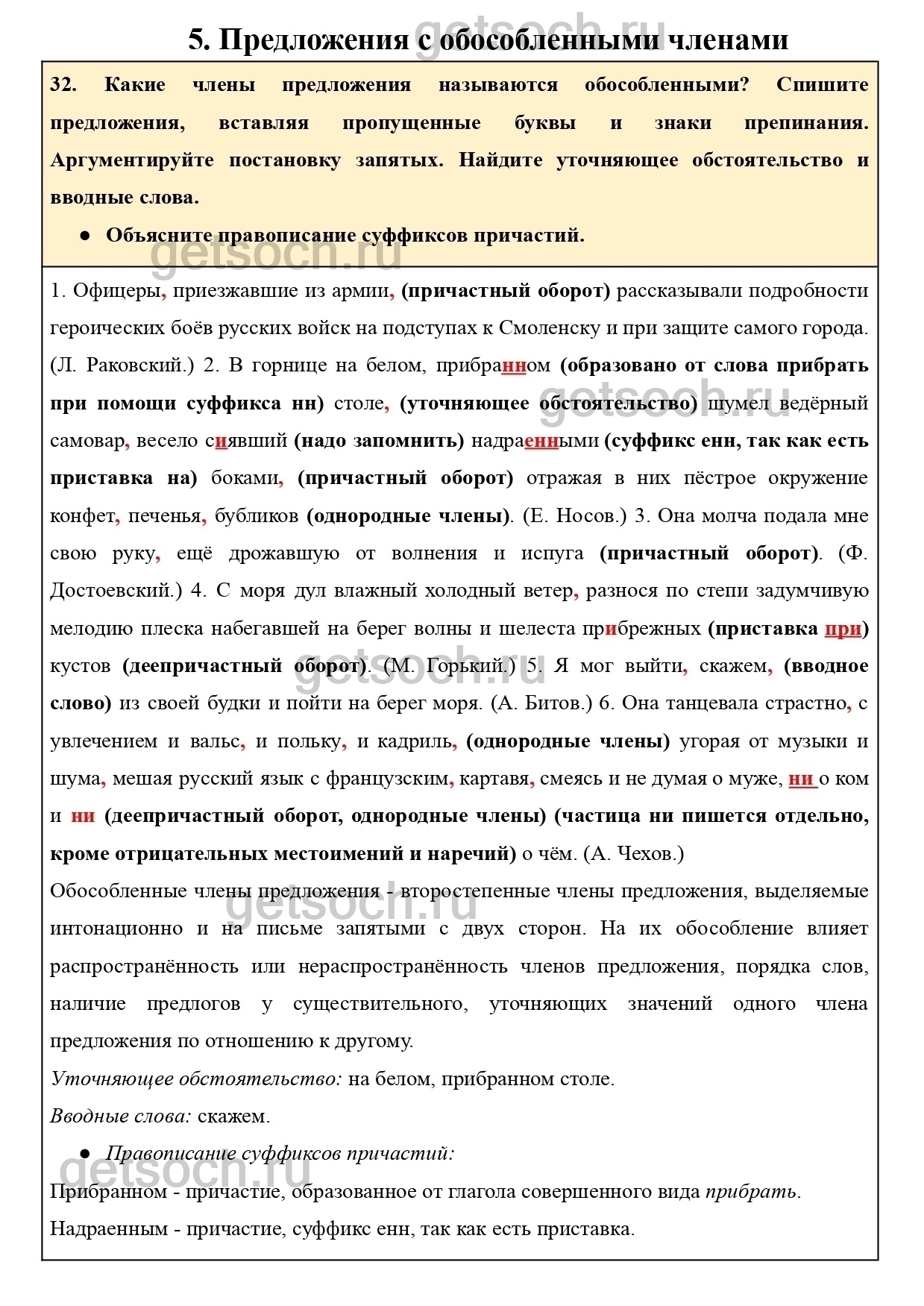 32. Какие члены предложения называются обособленными? Спишите предложения, вставляя пропущенные буквы и знаки препинания. Аргументируйте постановку запятых. Найдите уточняющее обстоятельство и вводные слова.