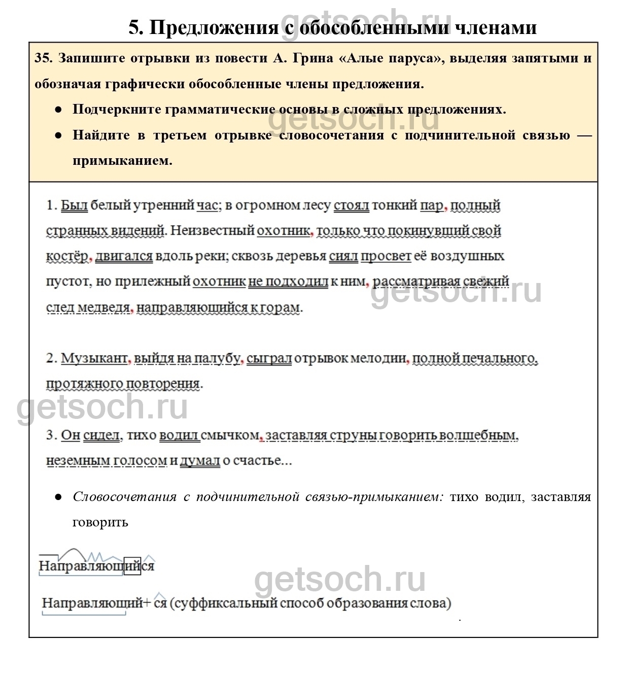 35. Запишите отрывки из повести А. Грина «Алые паруса», выделяя запятыми и обозначая графически обособленные члены предложения.