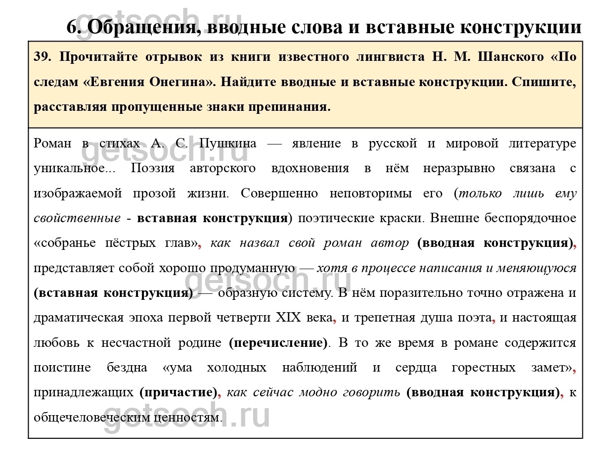 39. Прочитайте отрывок из книги известного лингвиста Н. М. Шанского «По следам «Евгения Онегина». Найдите вводные и вставные конструкции. Спишите, расставляя пропущенные знаки препинания.