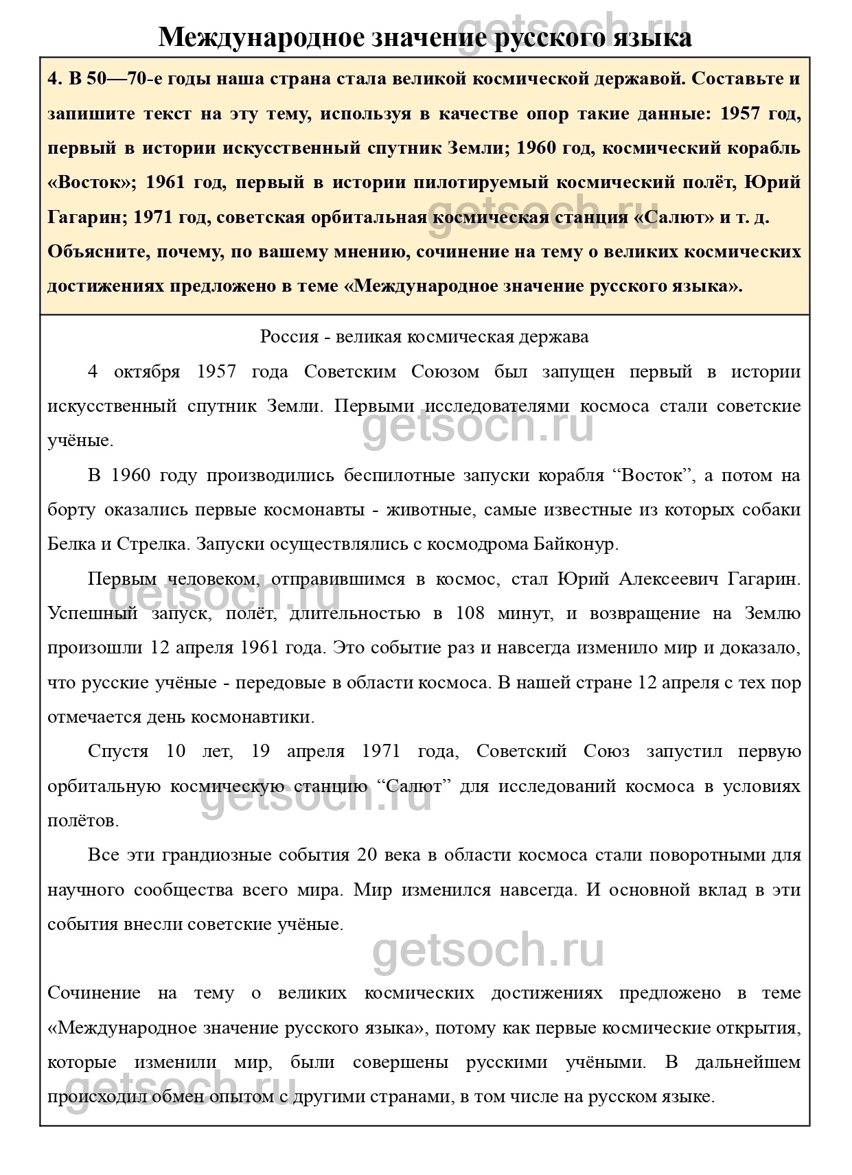Объясните, почему, по вашему мнению, сочинение на тему о великих космических достижениях предложено в теме «Международное значение русского языка».