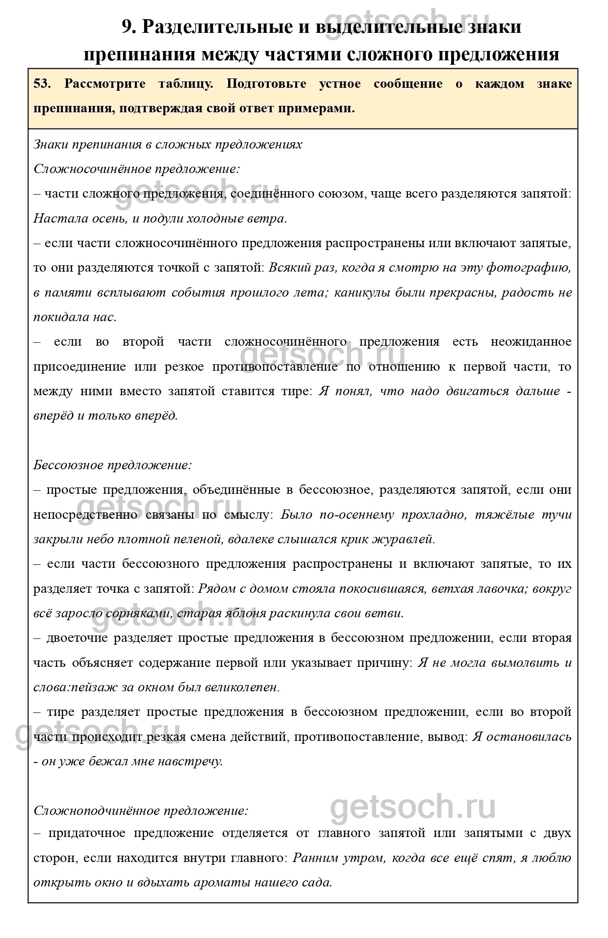 Рассмотрим ответы на Упражнение 53 из учебника по русскому языку для 9 класса Ладыженской