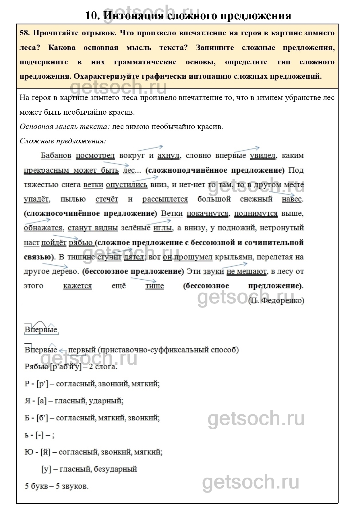 Рассмотрим ответы на Упражнение 58 из учебника по русскому языку для 9 класса Ладыженской